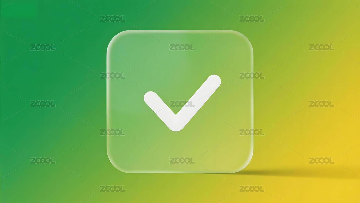 绿色渐变背景上的透明勾选图标