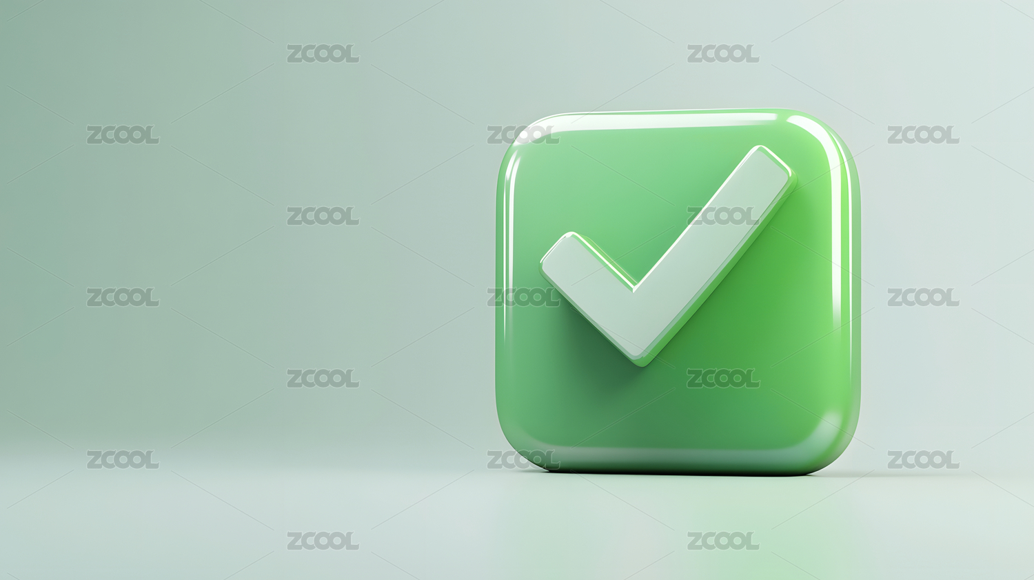 绿色背景上的透明方块对勾图标