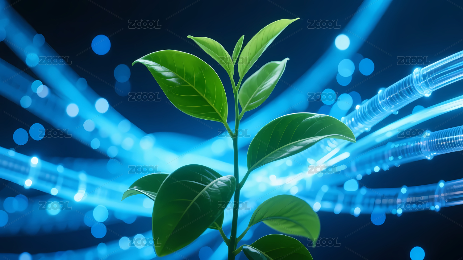 设计,线条,茎干,现代,背景,叶片,生长,蓝色,光影,科技