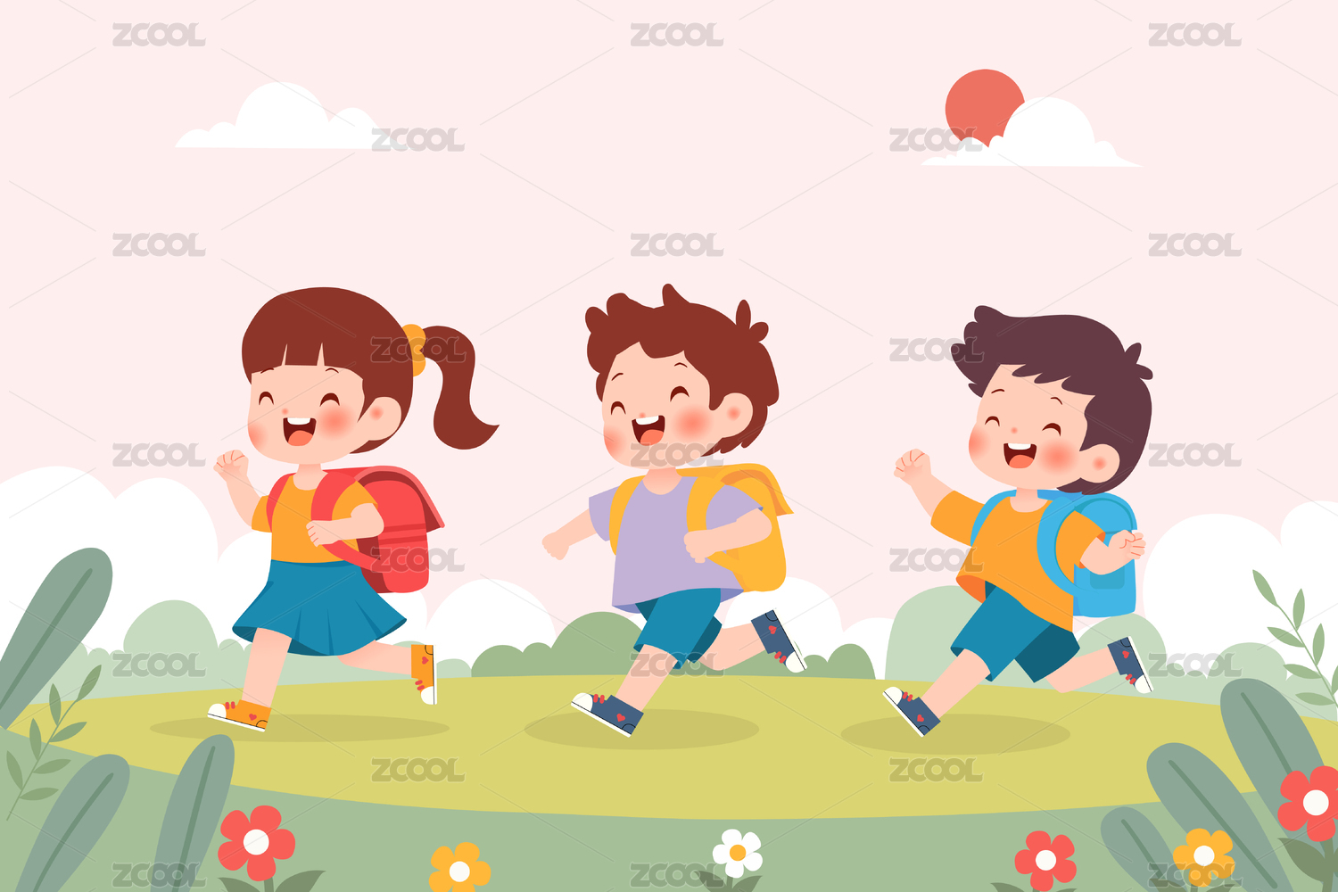 六一儿童节小孩户外玩耍夏天暑假娱乐插画