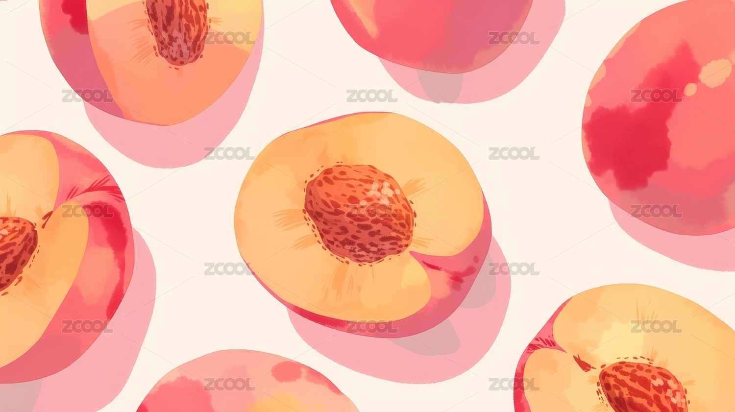 手绘水彩写实风格多汁水蜜桃子水果素材插画