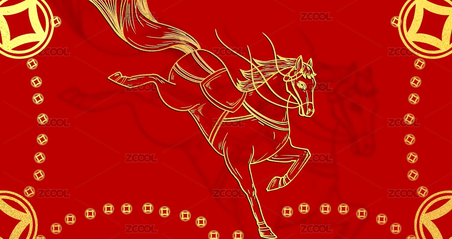 马,插画,国潮风,中国文化,装饰,金色,春节,十二生肖,烫金,中国