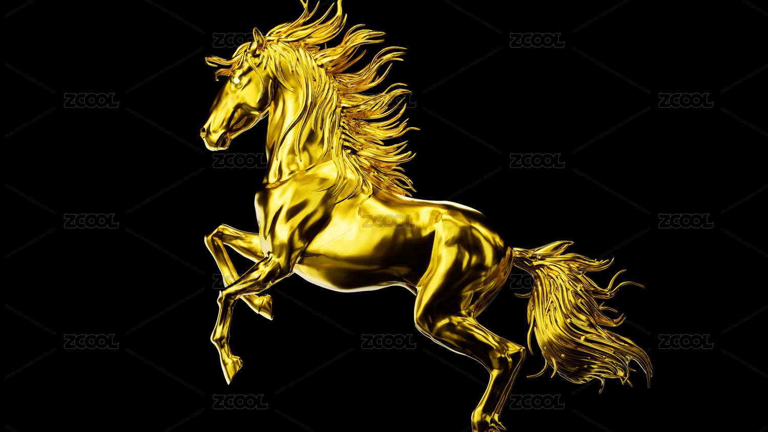 三维渲染黑色背景金马奔腾