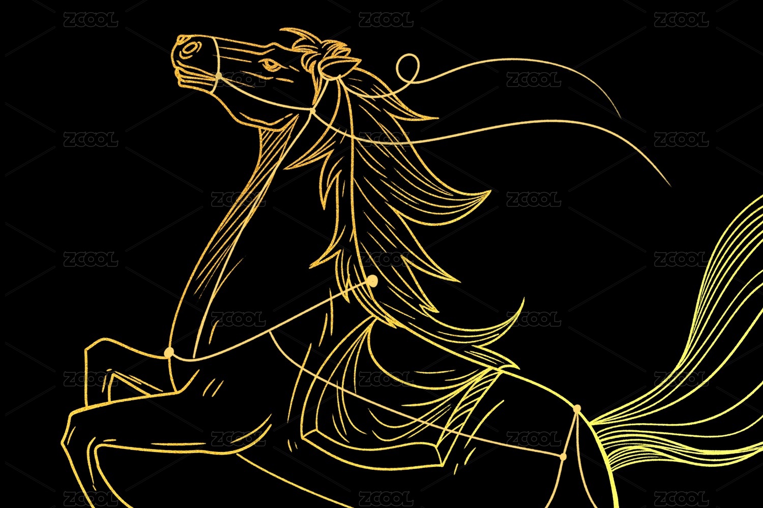 金色骏马奔腾黑色背景图