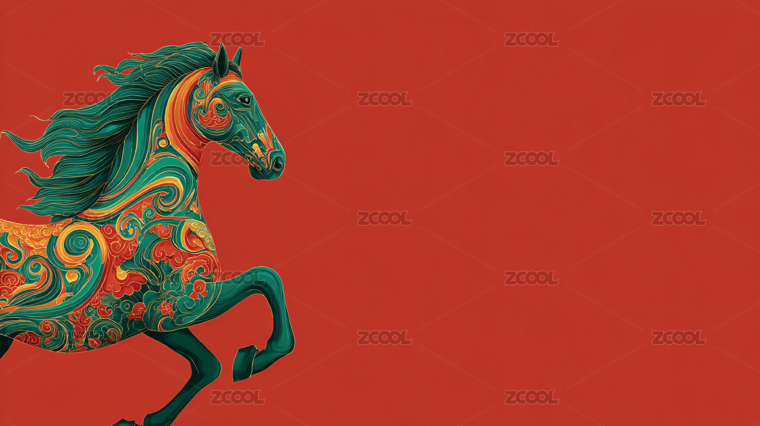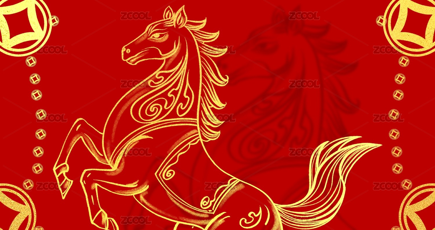 马,插画,国潮风,中国文化,装饰,金色,春节,十二生肖,烫金,中国
