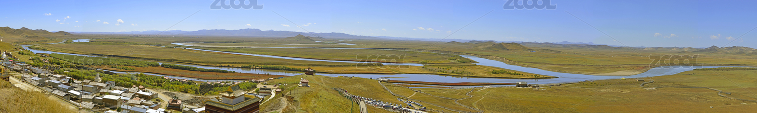 阿坝州若尔盖唐克草原九曲黄河第一湾风光俯拍全景