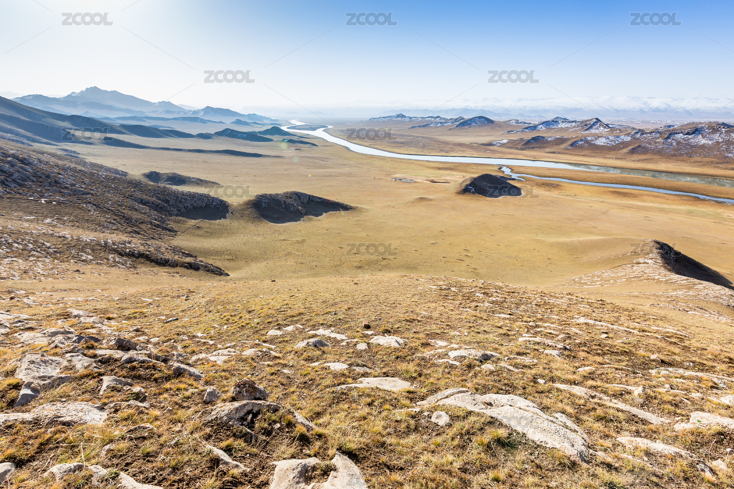新疆巴音布鲁克草原和雪山美景,九曲十八弯”的河流