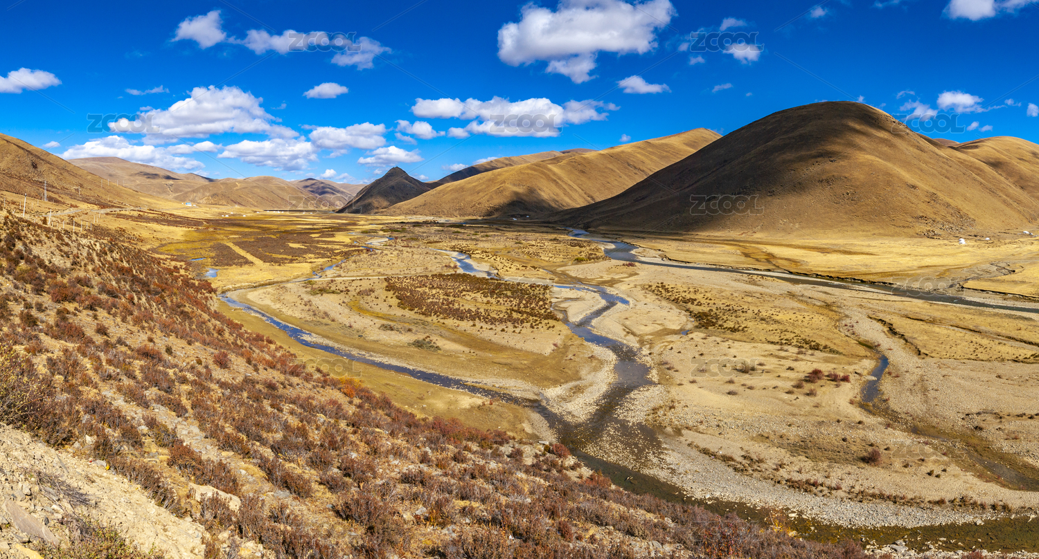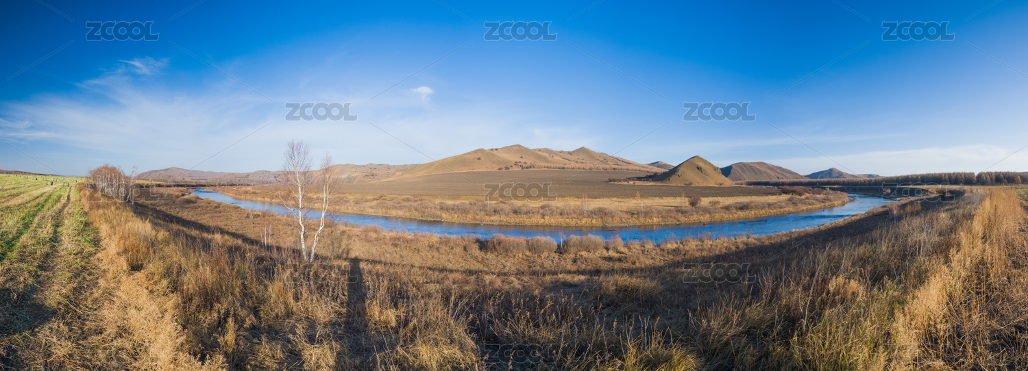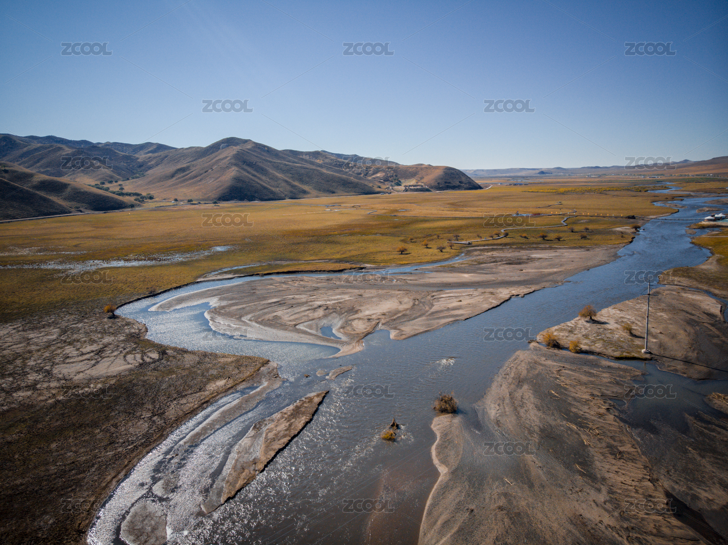 四川省阿坝红原县红原大草原月亮湾的白河及草原秋景