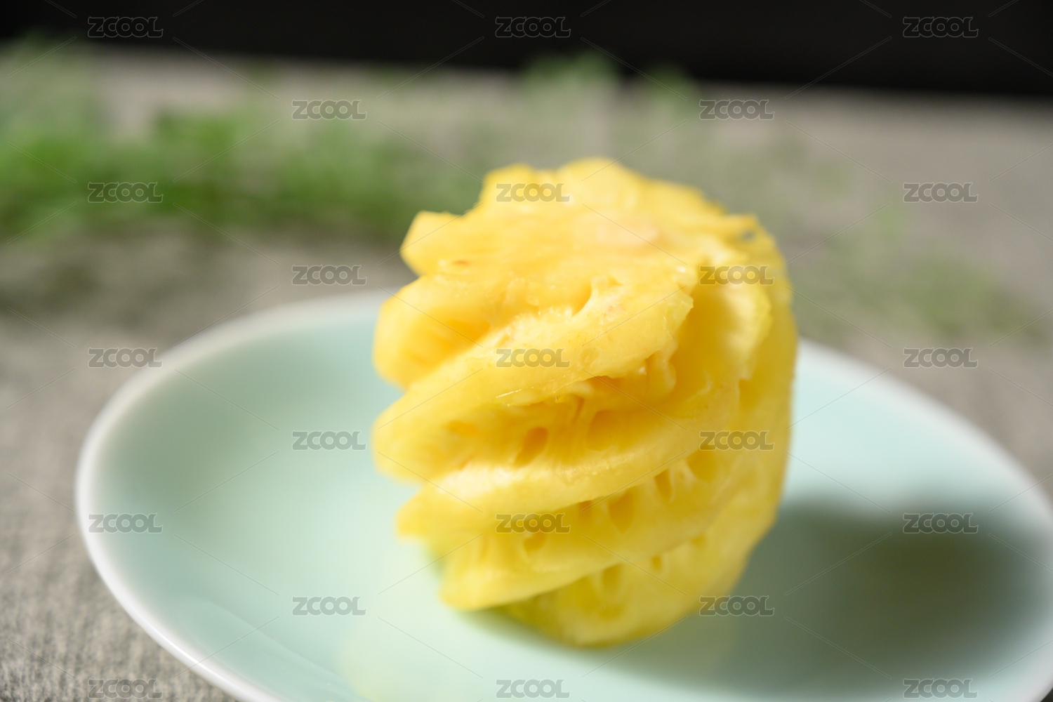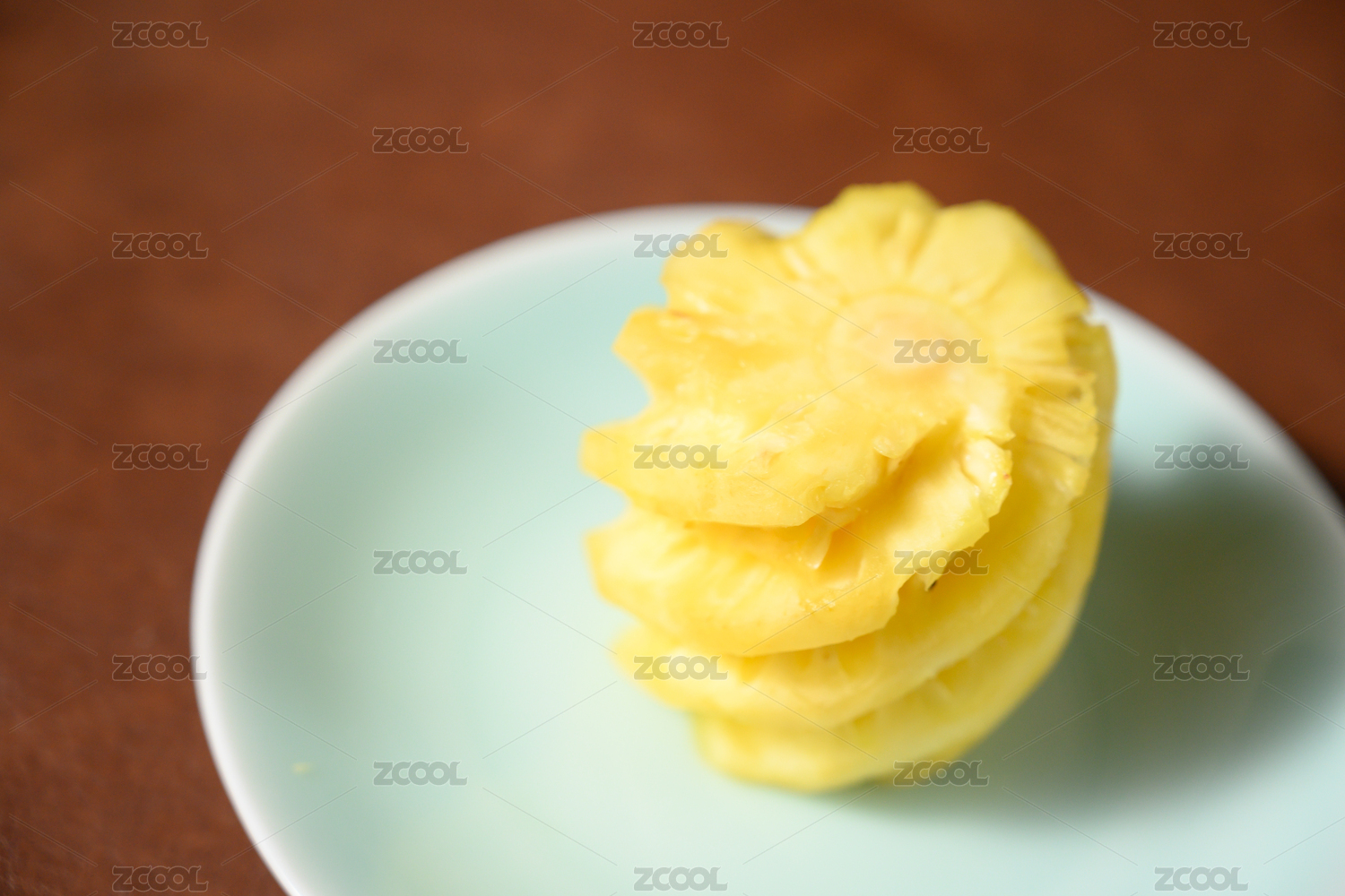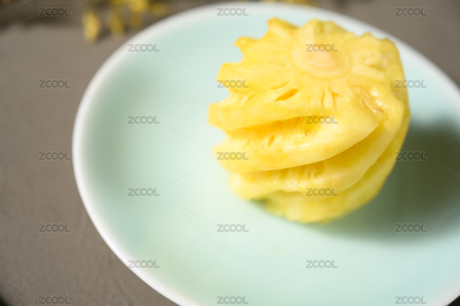桌面上的盘子里的美味可口的新鲜菠萝