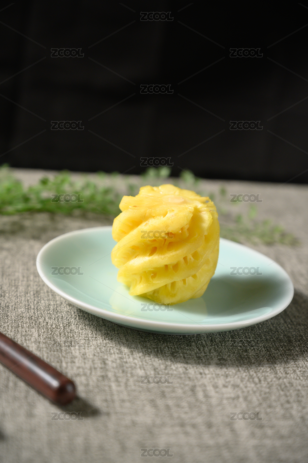 桌面上的盘子里的美味可口的新鲜菠萝