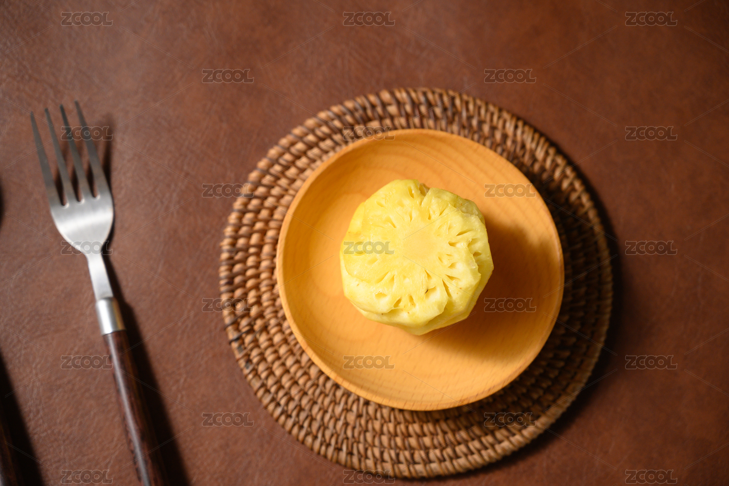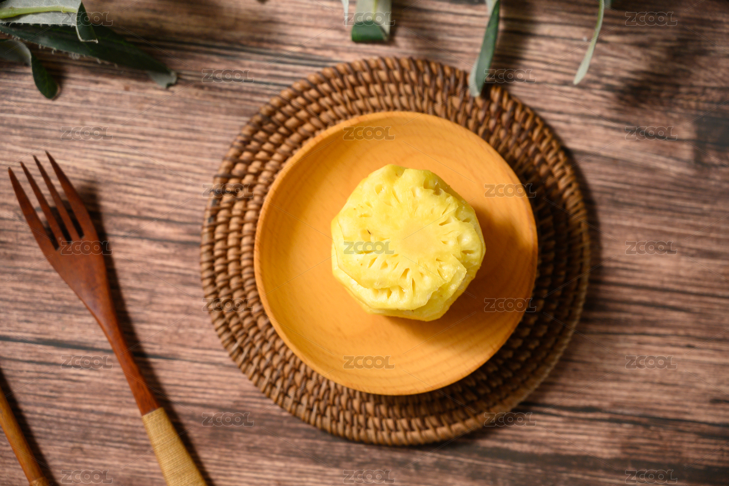 桌面上的盘子里的美味可口的新鲜菠萝