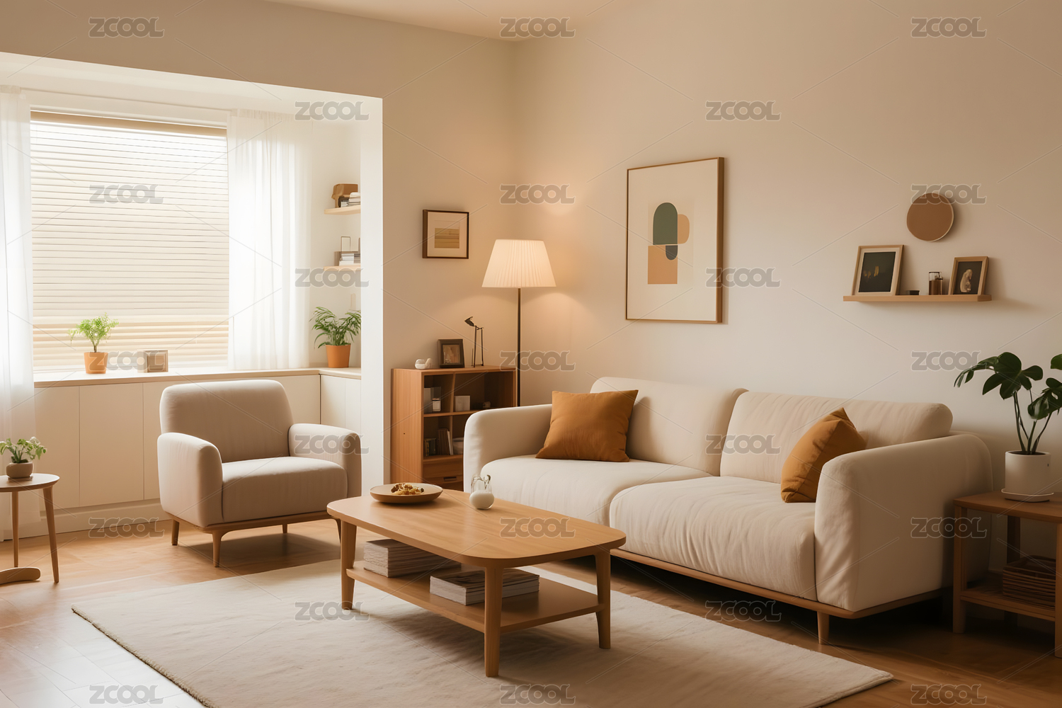 客厅,干花,米色窗帘,木质茶几,阳光,样板间,空相框,家居,沙发