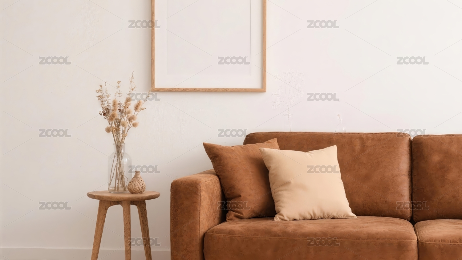 棕色沙发与干花
