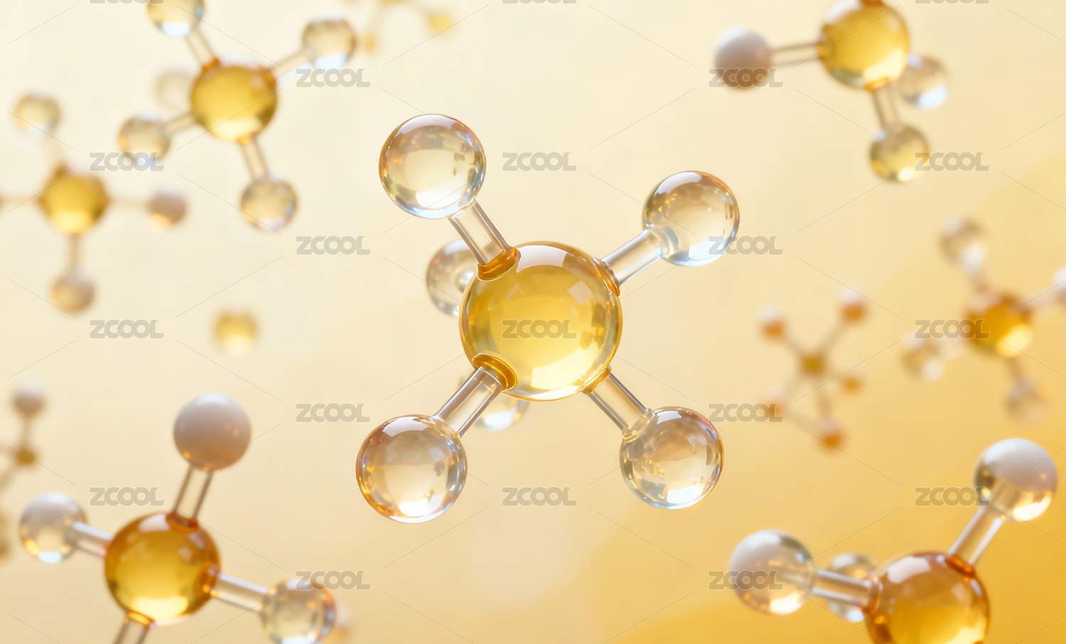 微观世界的黄色分子结构晶莹剔透的分子世界