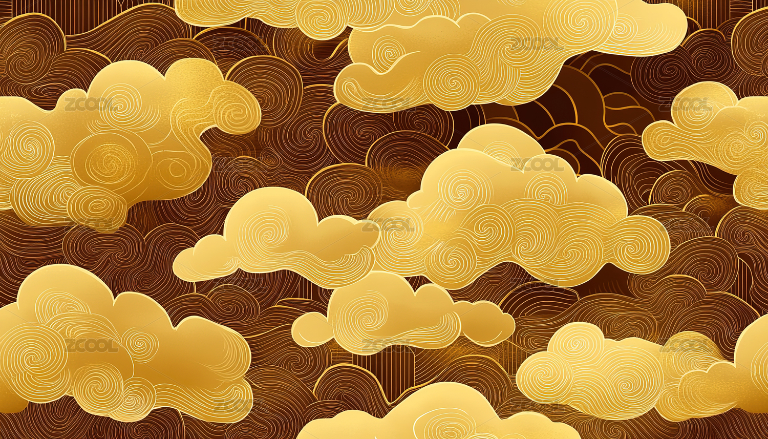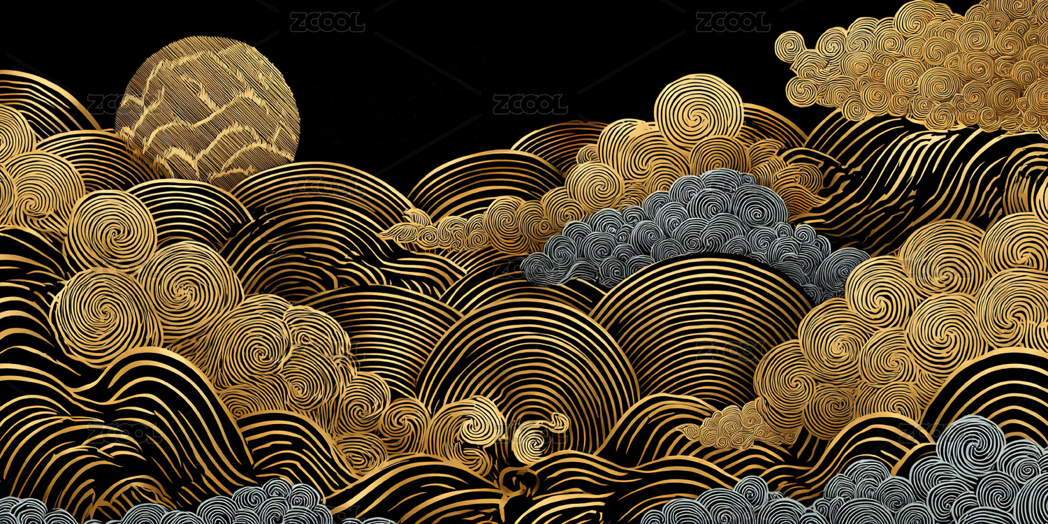 金色波浪与祥云图案