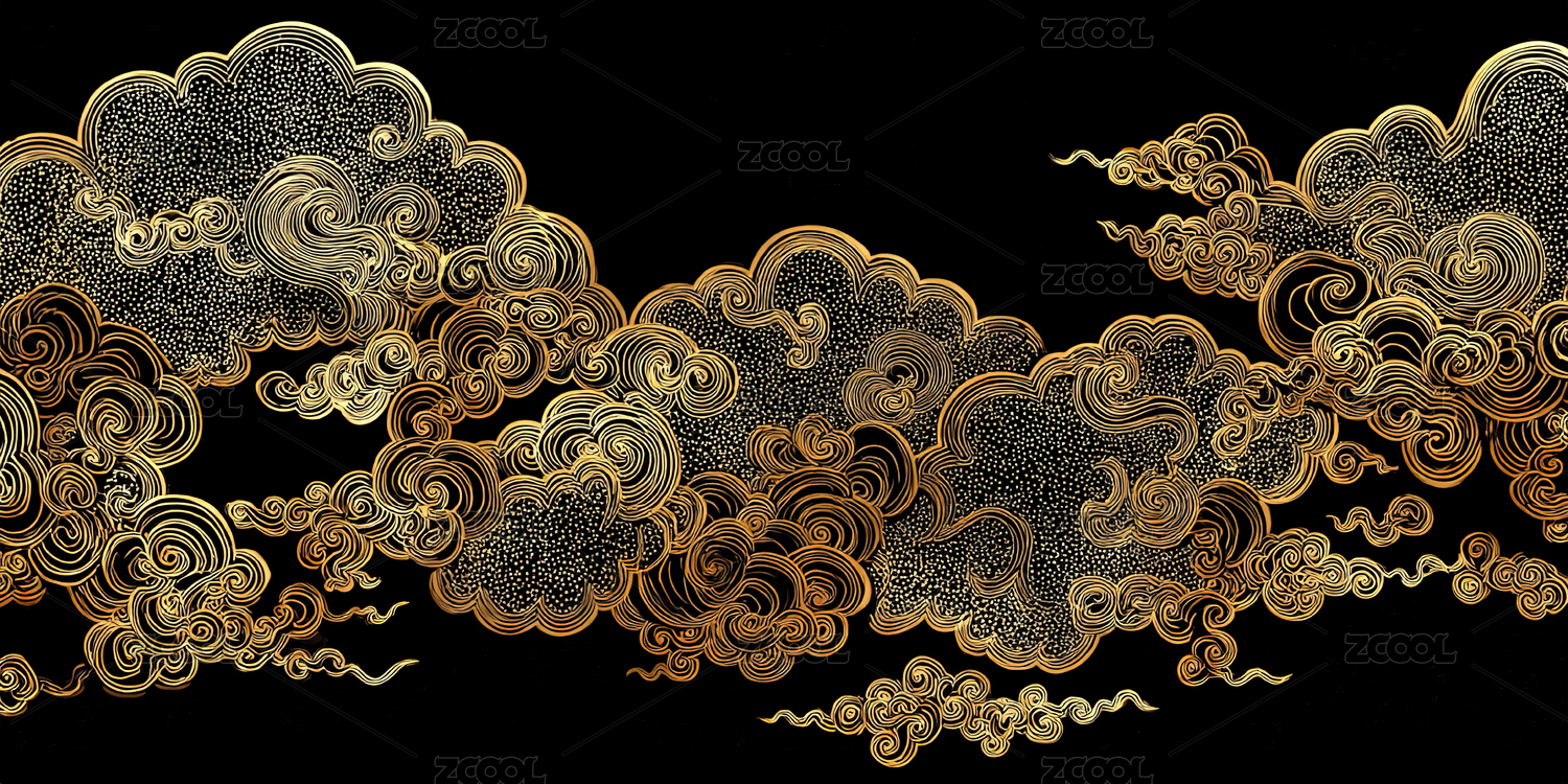 传统黑金色祥云纹理背景