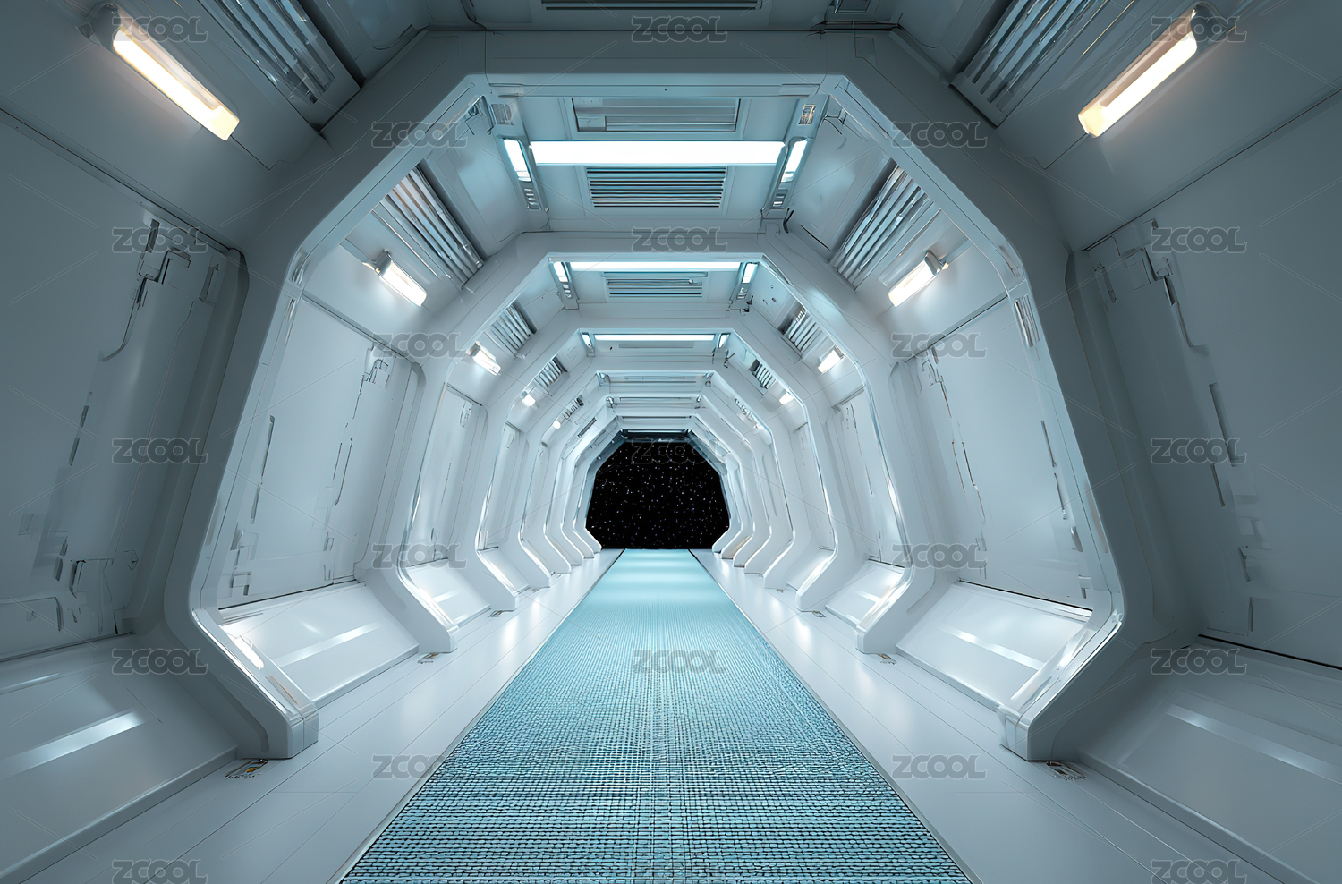 金属,线条,空间,现代,设计,反射,蓝色,墙壁,冷色调,通道