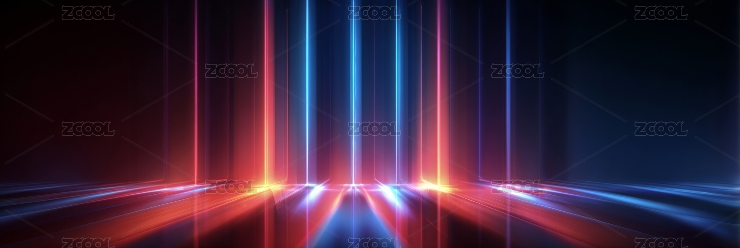 霓虹光束垂落的抽象空间
