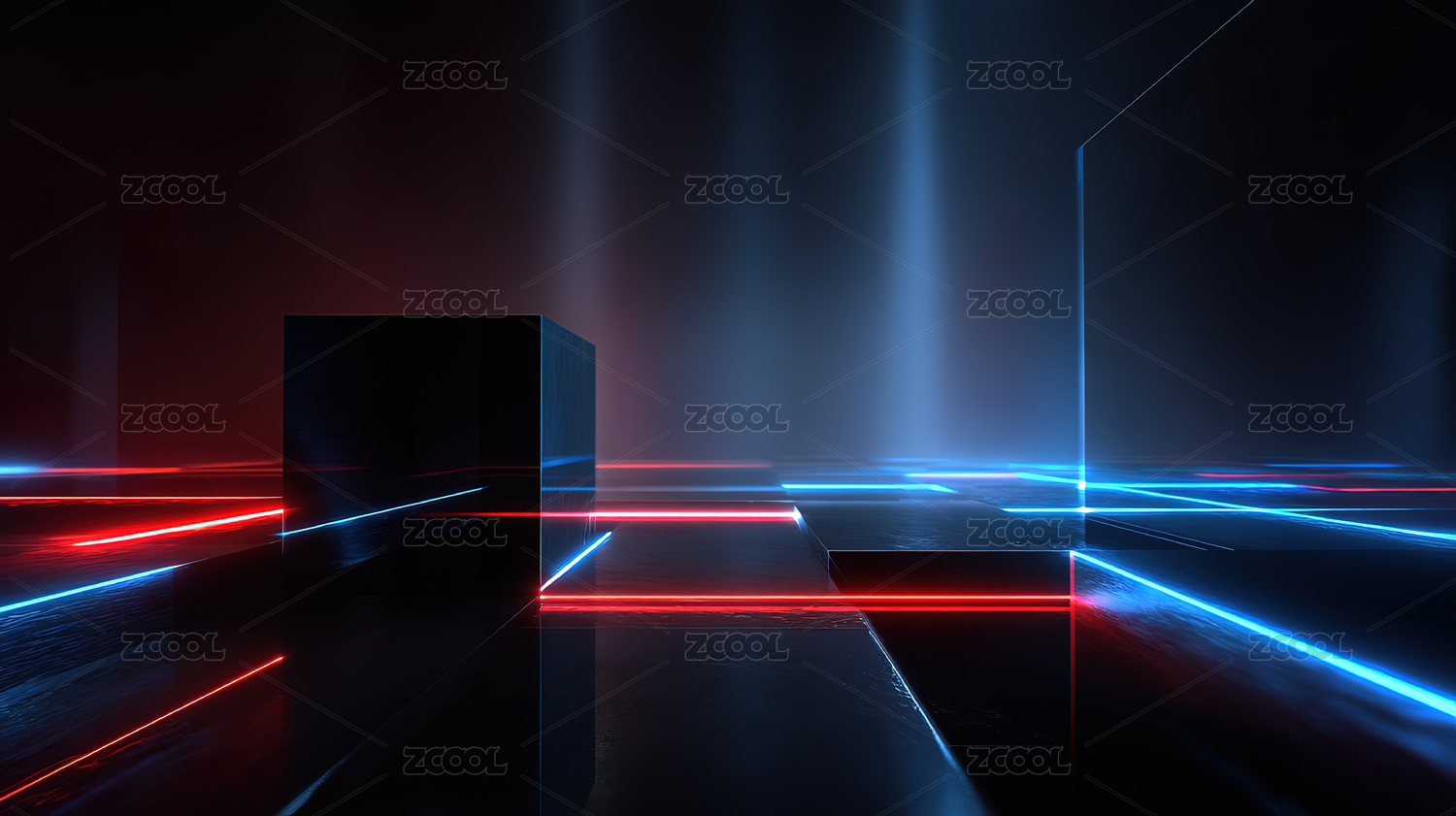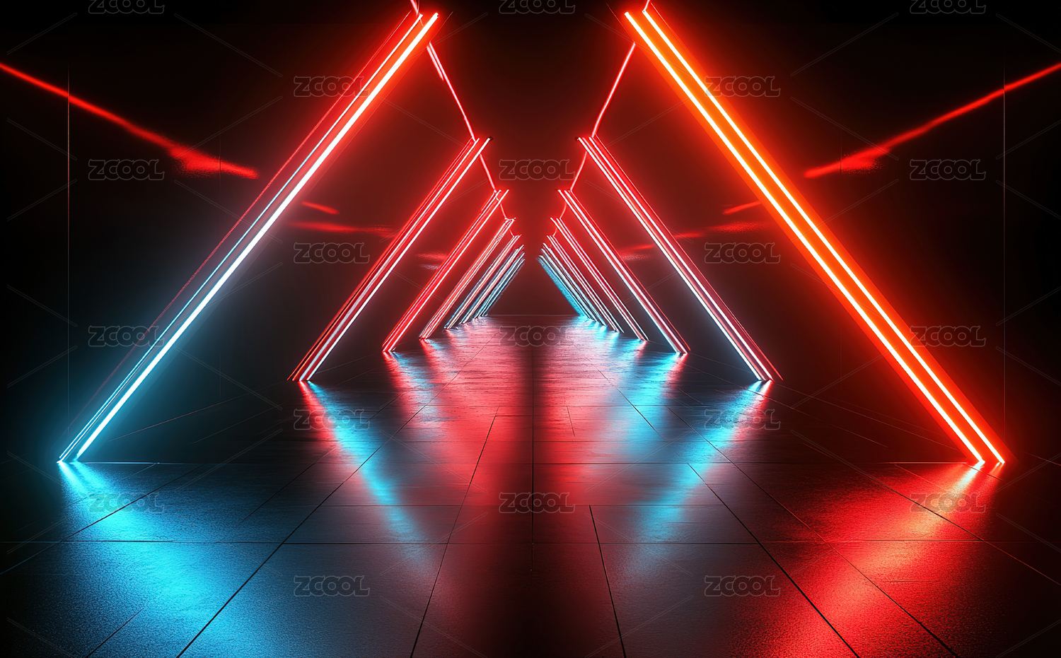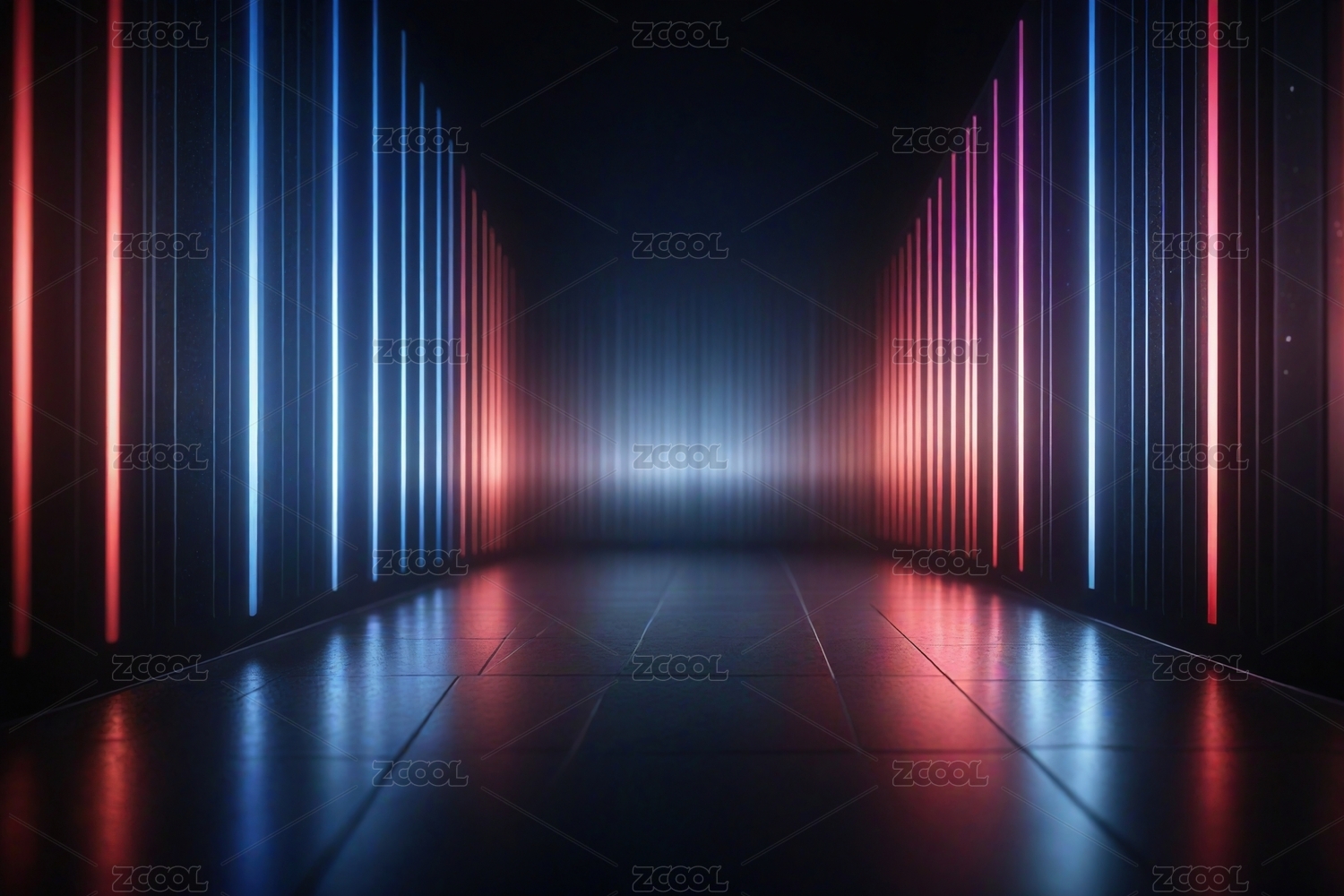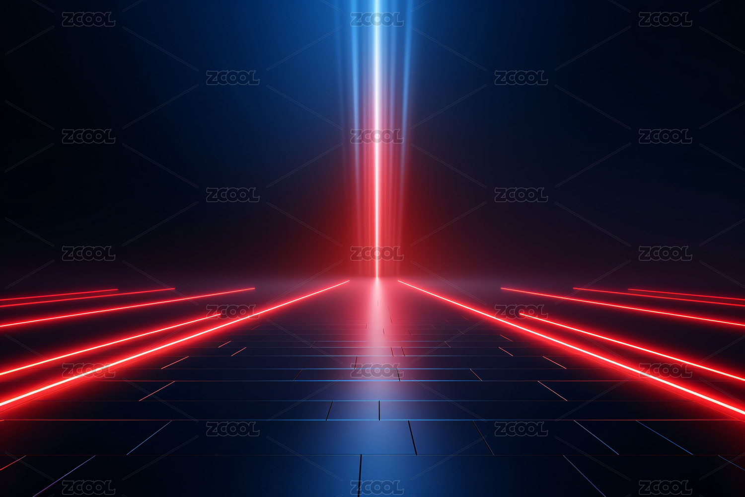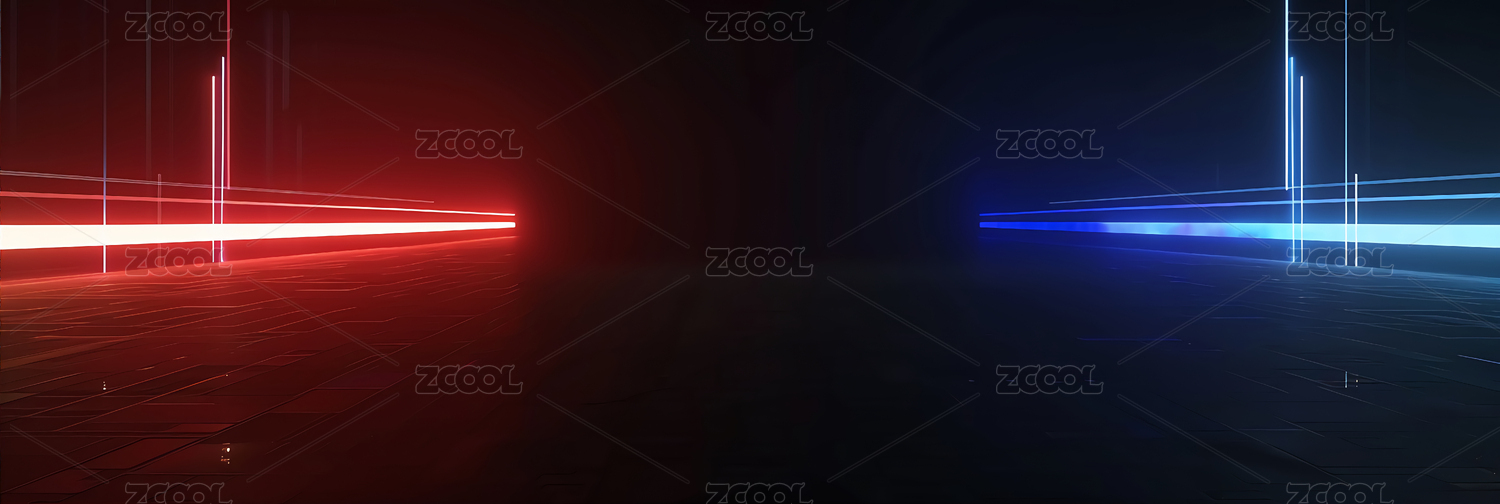 红蓝光束交织的未来走廊