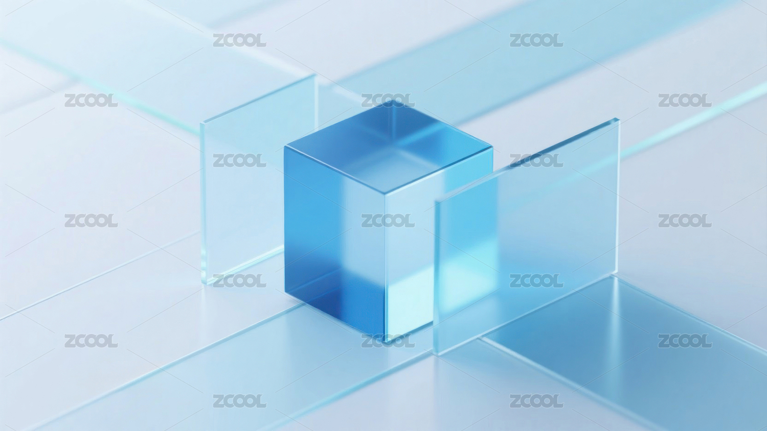 透明蓝色立方体的清新背景