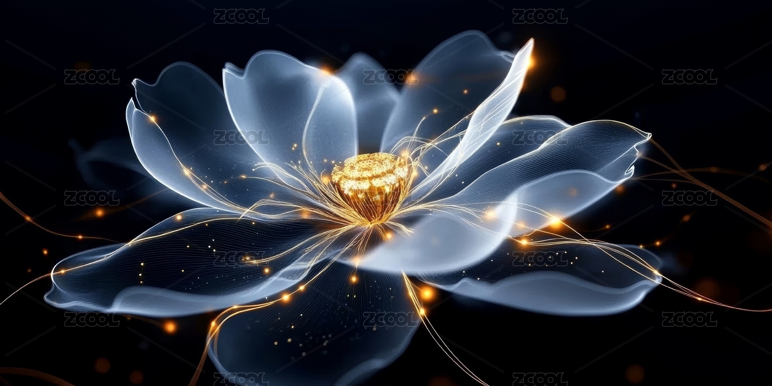 花朵花瓣绽放科技背景抽象数字艺术插画