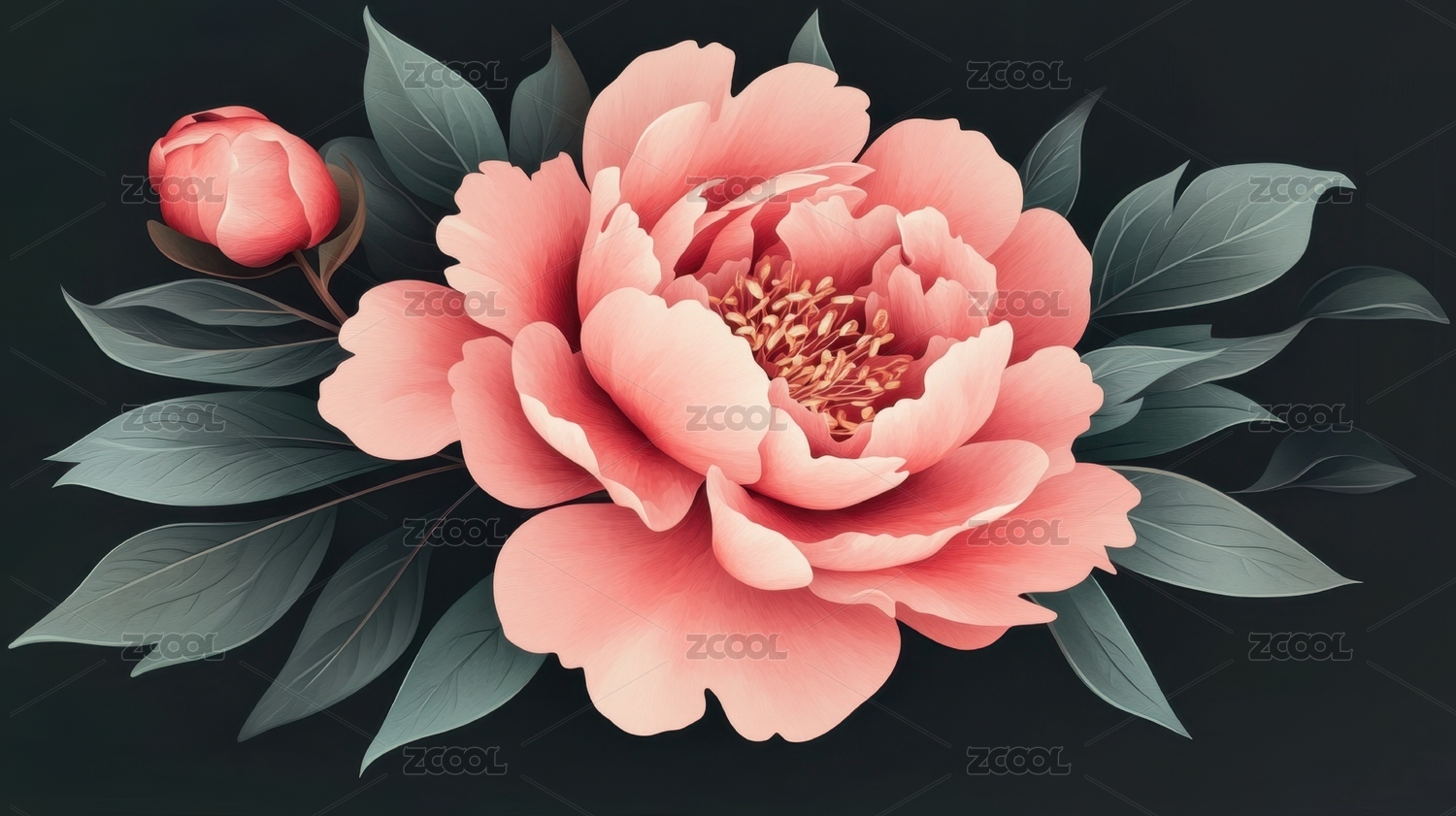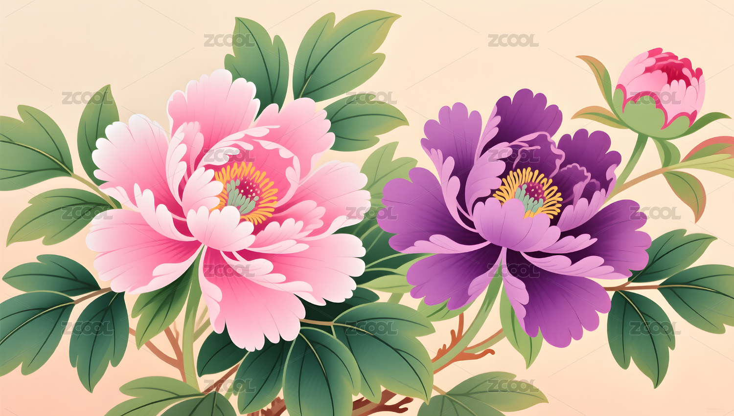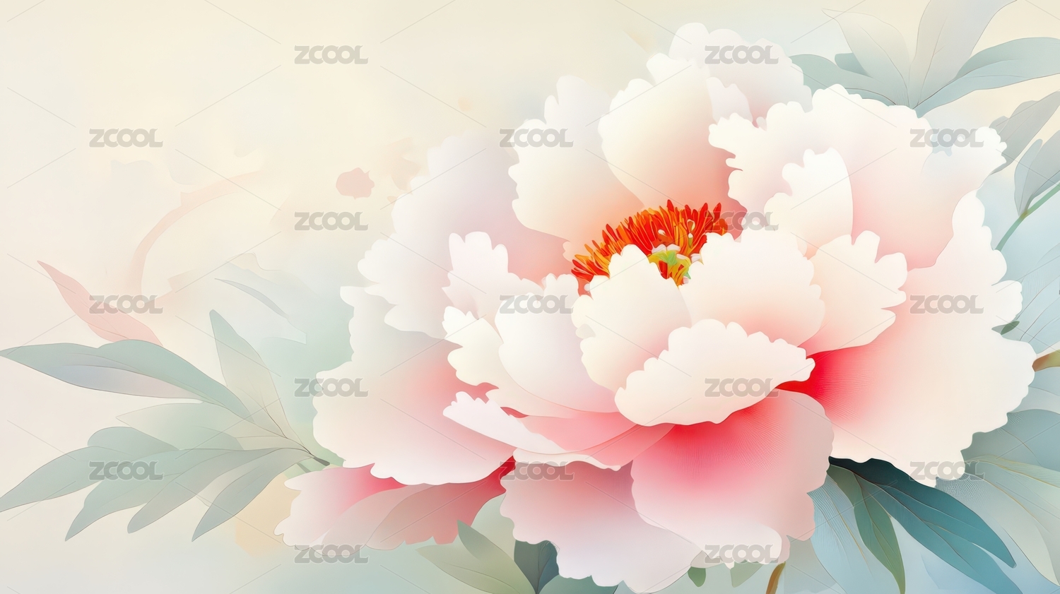 国潮,牡丹,花卉,红色,白色,水彩,中国画,传统,花瓣,背景