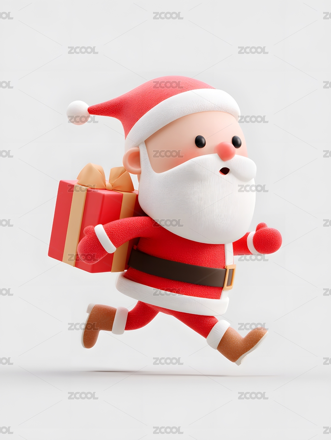卡通圣诞老人送礼物奔跑喜庆氛围