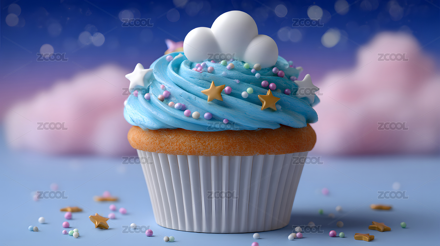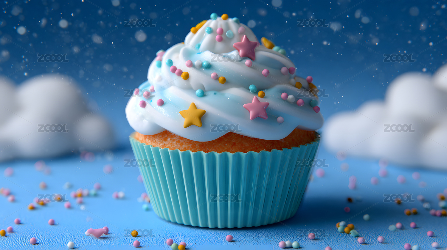 生日,蛋糕,庆祝,蜡烛,派对,蓝色,糖霜,星星,装饰,梦幻