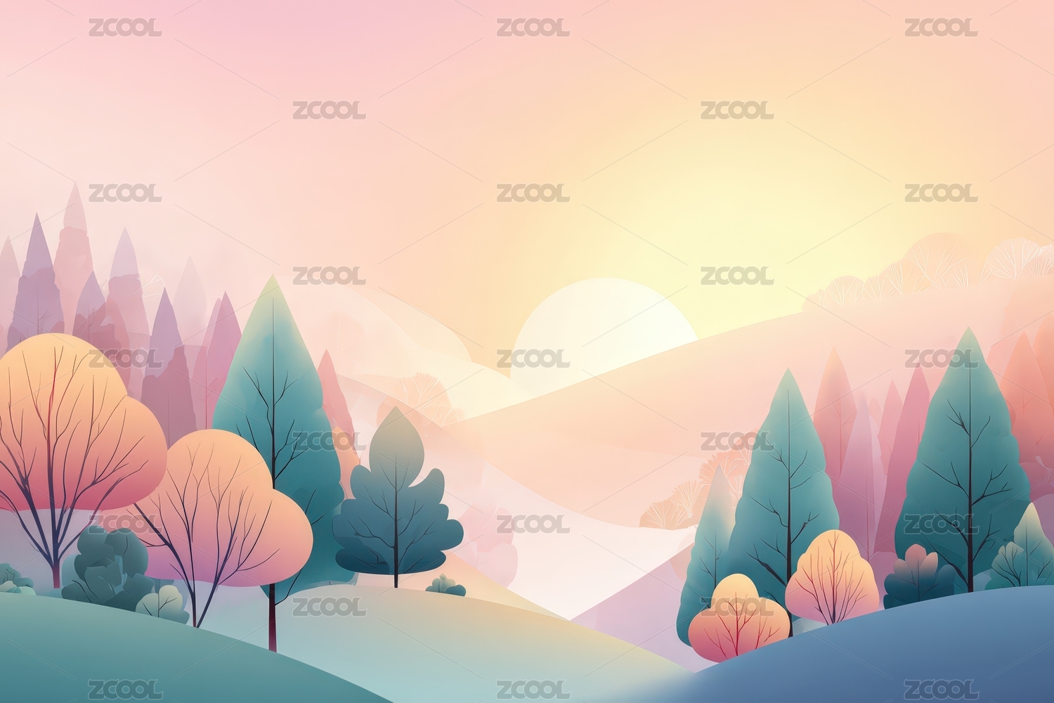 立冬节气冬天森林大雪户外旅行节日场景插画
