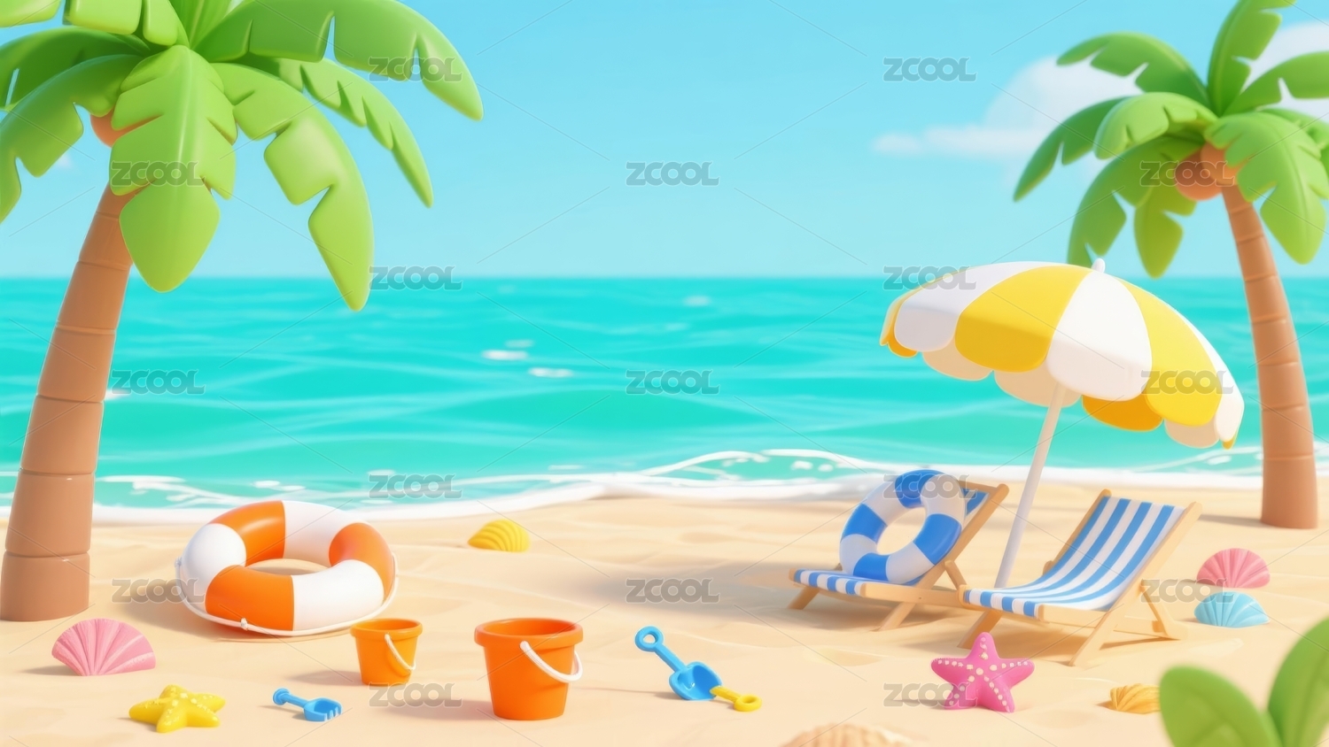 3D夏日海边沙滩度假出游场景