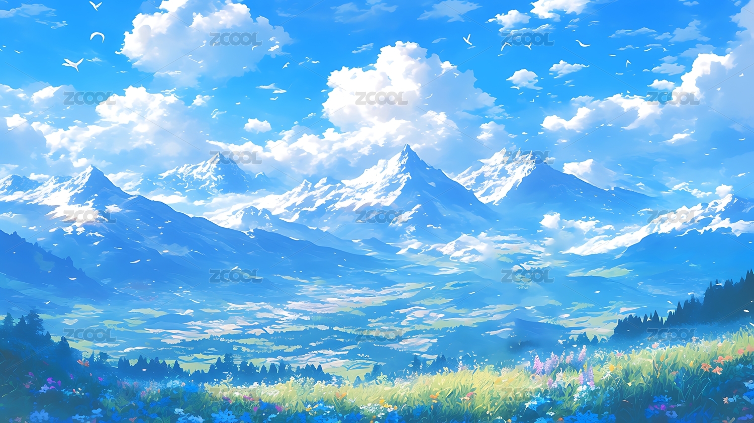 蓝天白云雪山户外场景壁纸