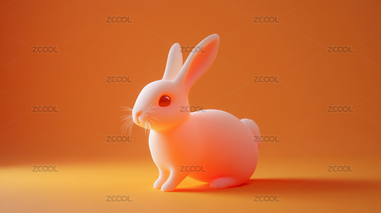 晴朗野外一只长耳朵红眼睛白兔3D卡通插画