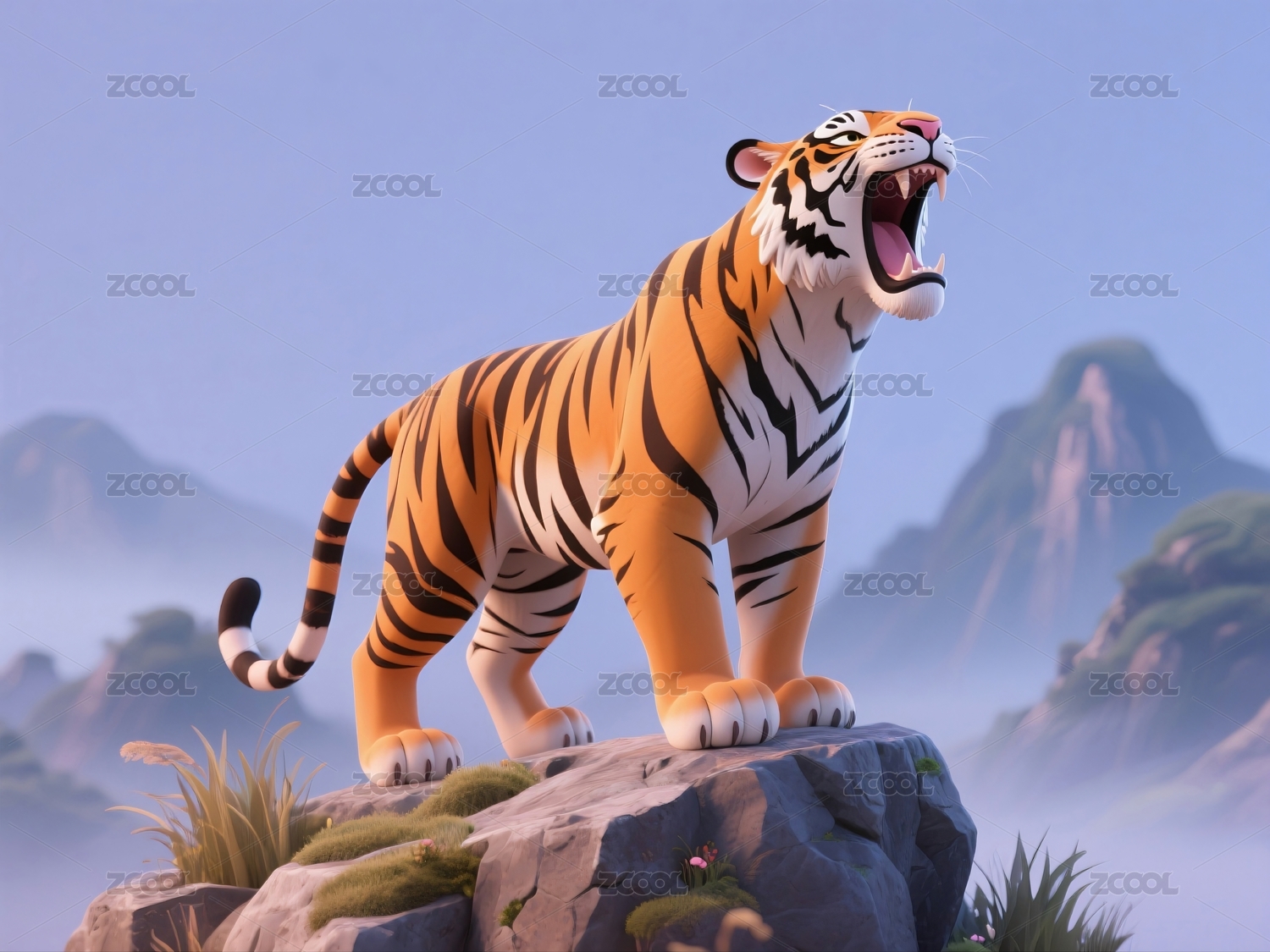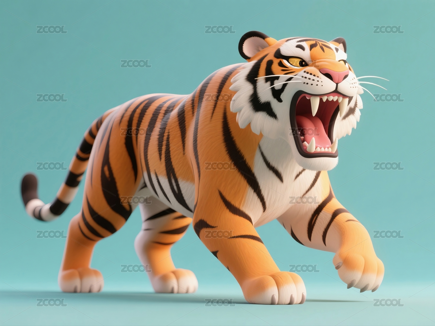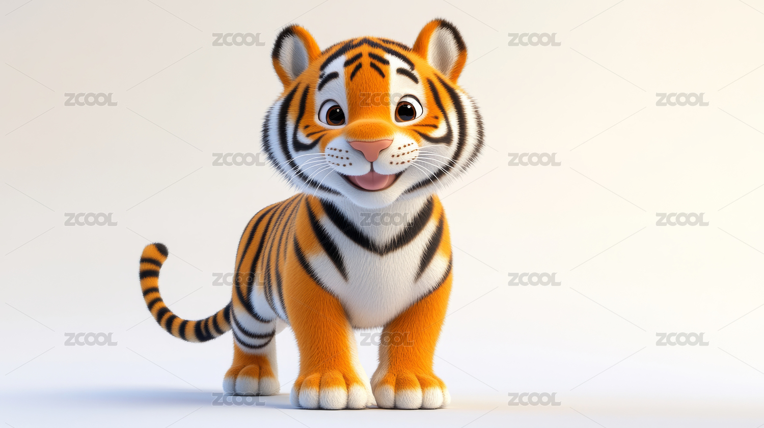 可爱卡通虎年动物形象的IP吉祥物3D插画
