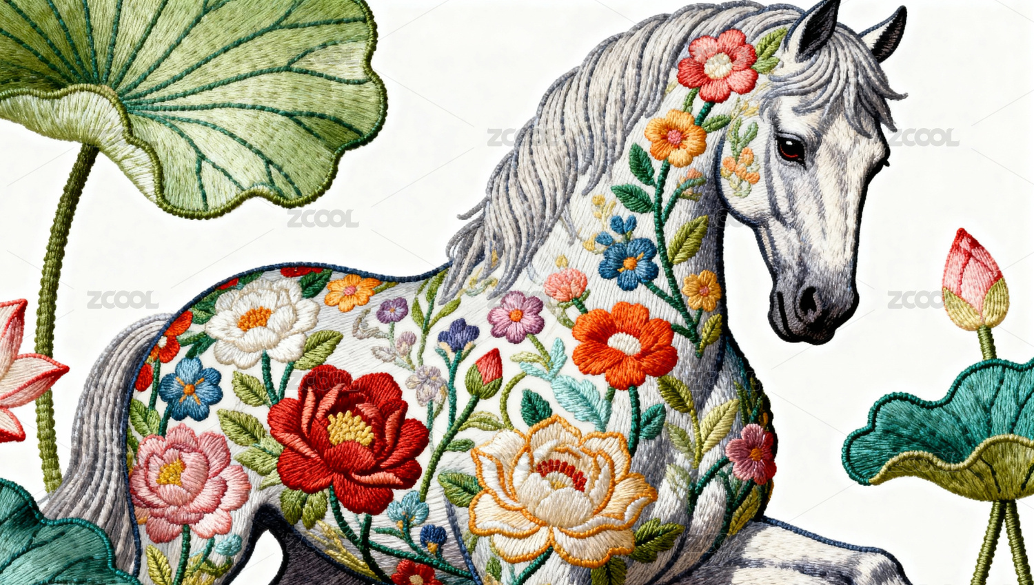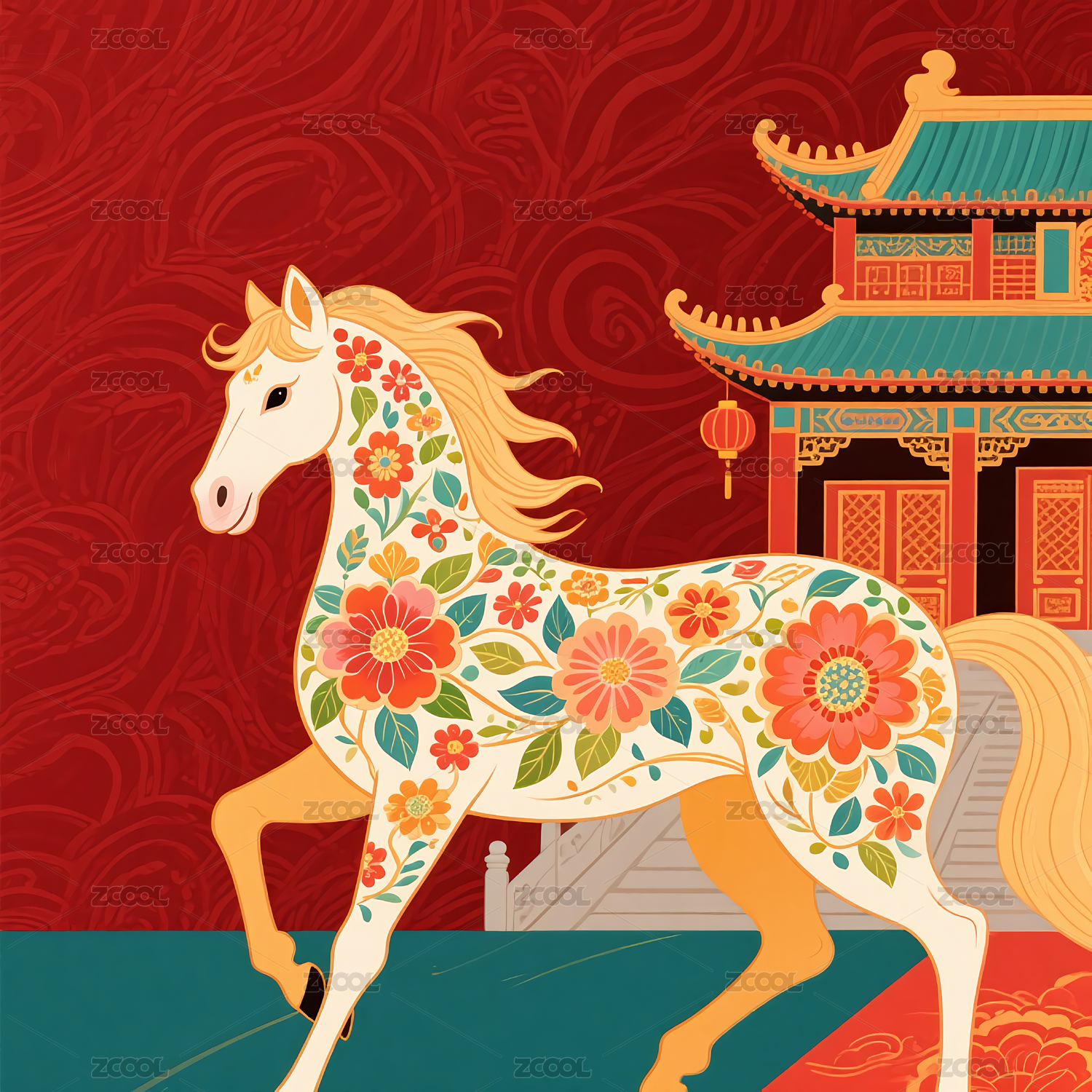 马,红色,花纹,花卉,装饰,图案,白色,设计,传统,艺术