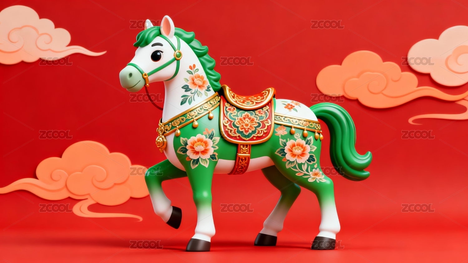 彩马国潮感新年生肖马场景