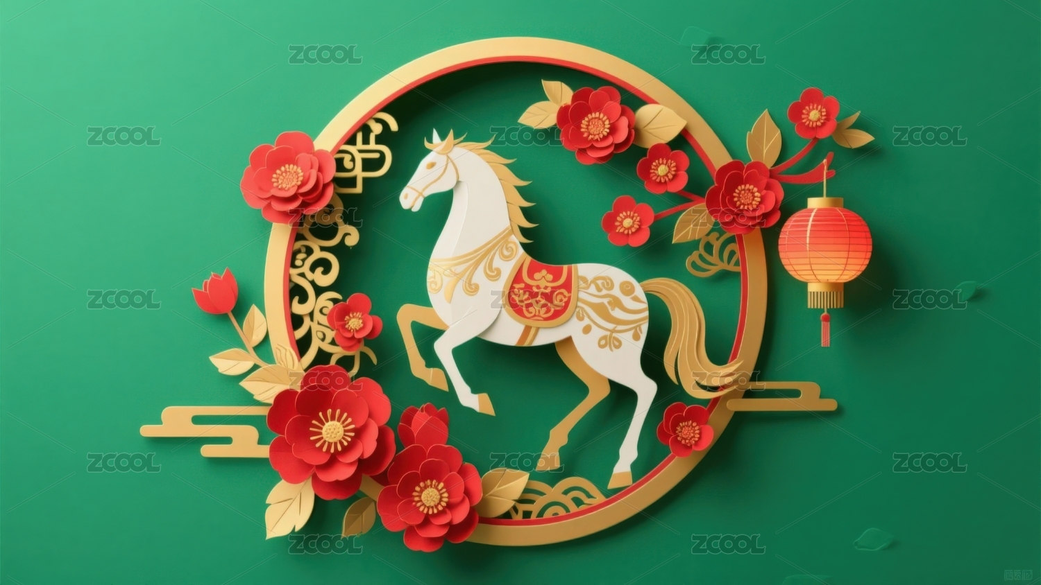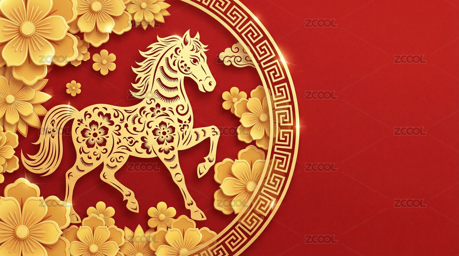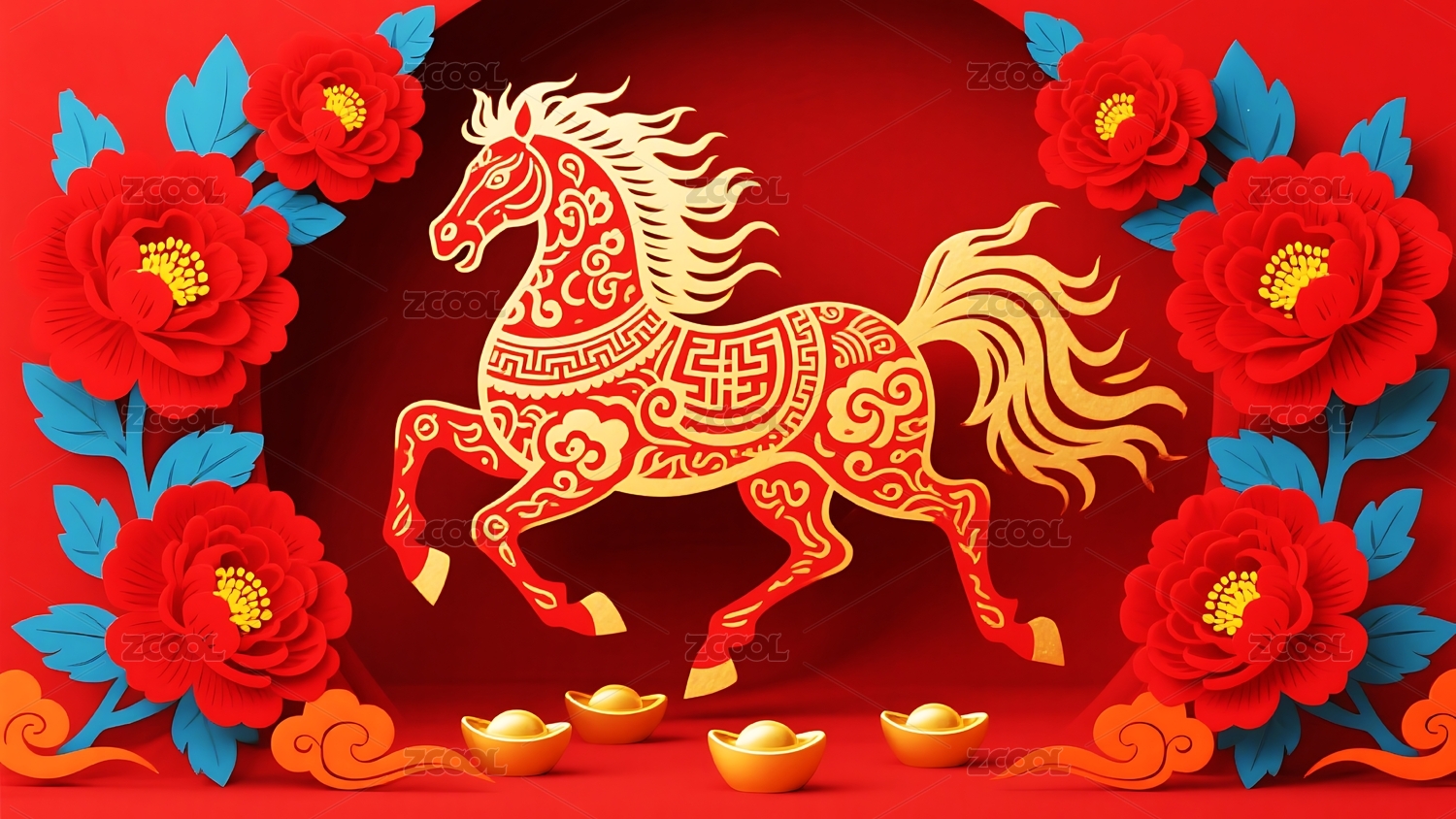 马,红色,背景,装饰,金色,图案,传统,节日,喜庆,新年