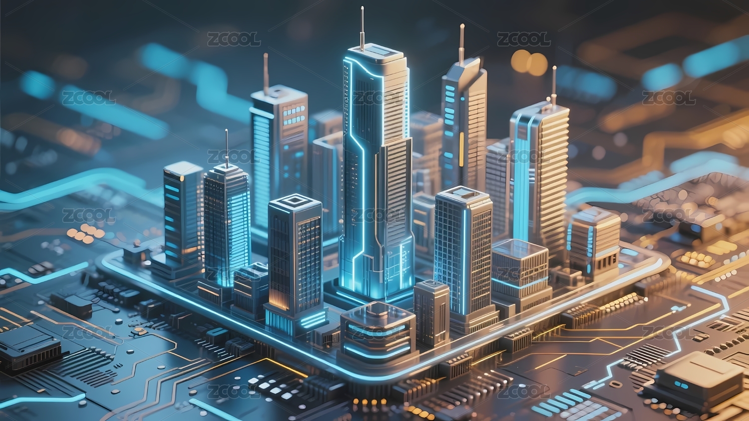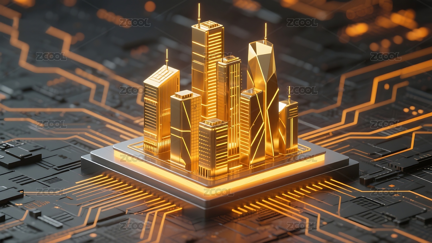 金色,设计,风格,城市,芯片,建筑,电路,高楼,科技,电子