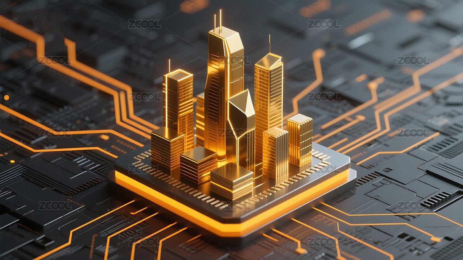 金色,设计,城市,芯片,建筑,电路,高楼,科技,线路,电子