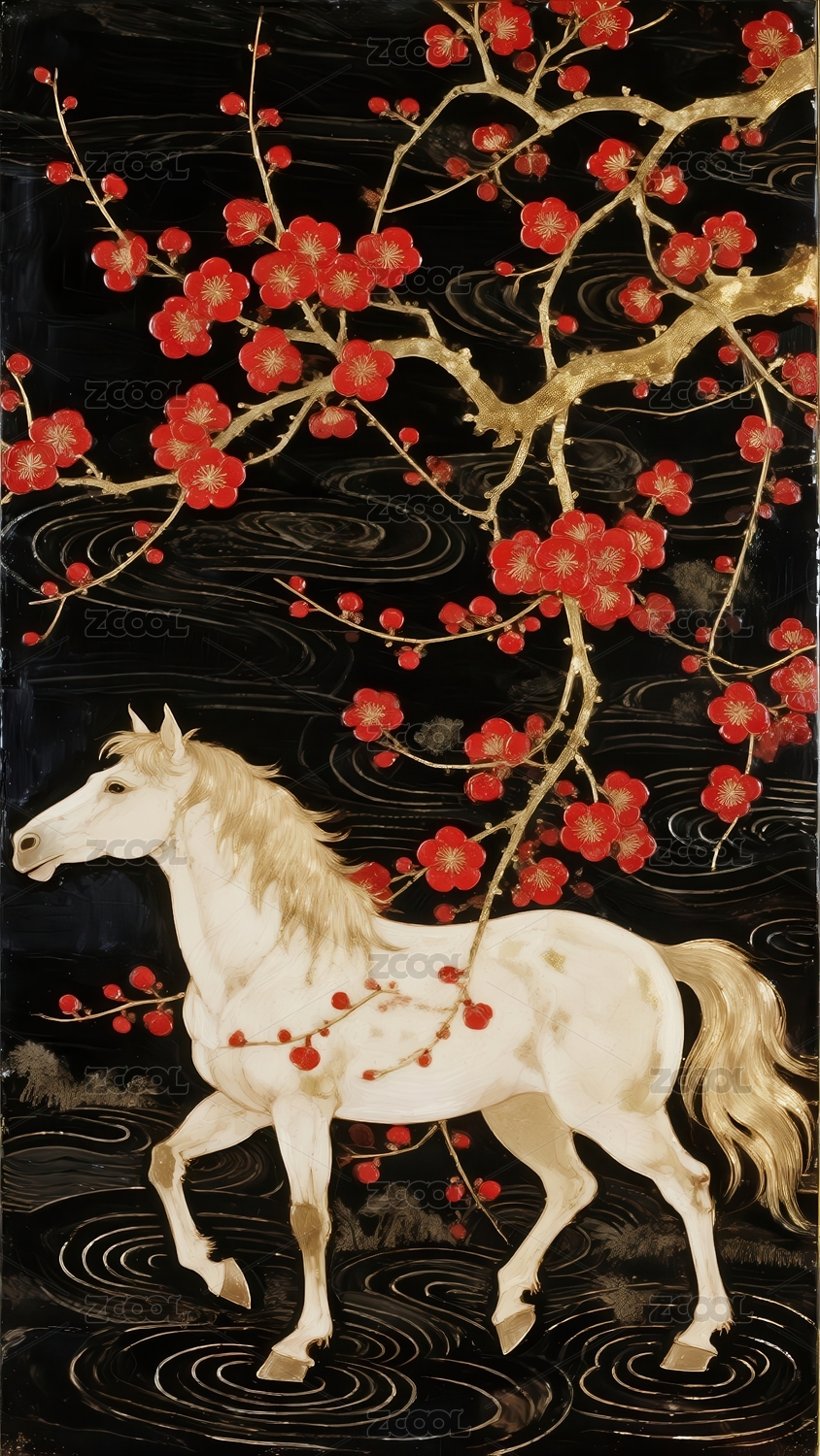 风格,马,红色,花纹,装饰,图案,传统,背景,喜庆,艺术