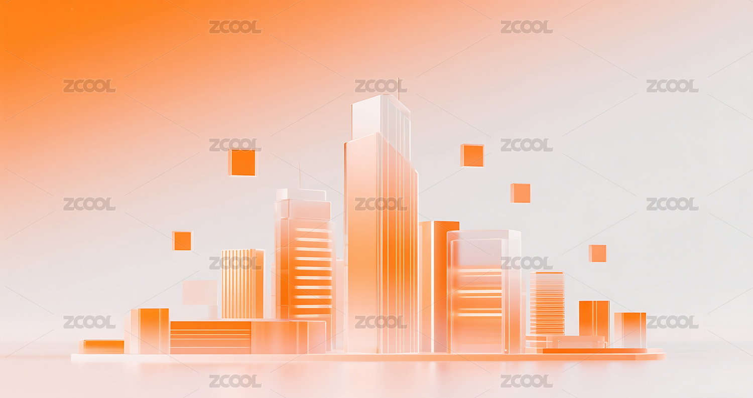 橙色商务科技未来玻璃质感图形设计城市建筑