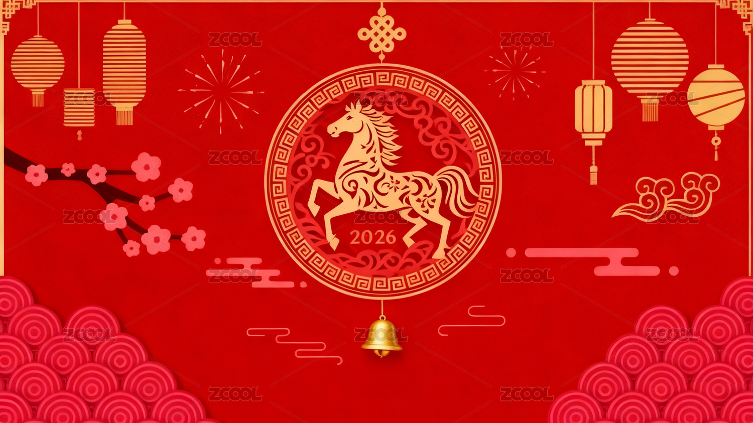 装饰,背景,节日,枝条,可爱,圆形,马,灯笼,红色,烟花