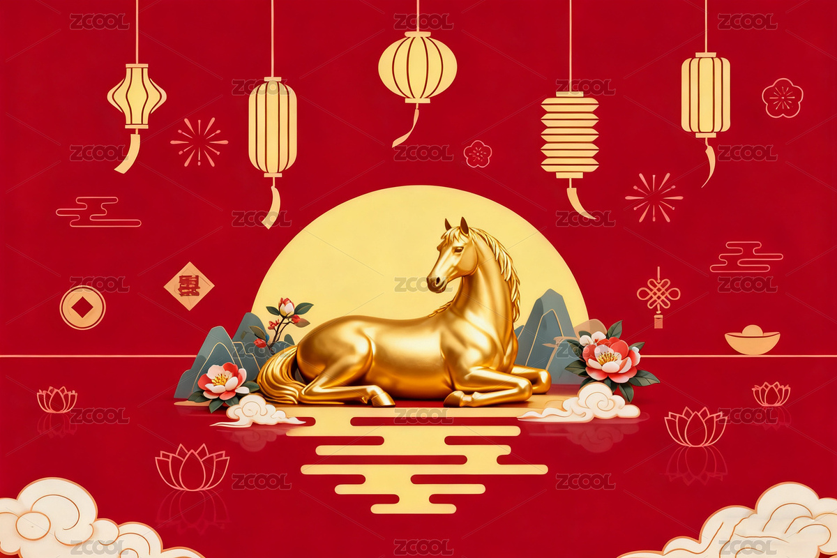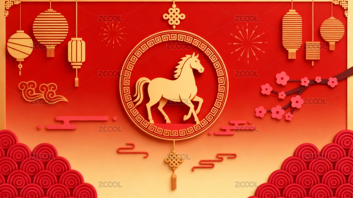 背景,传统,图案,设计,文化,灯笼,红色,喜庆,装饰,马