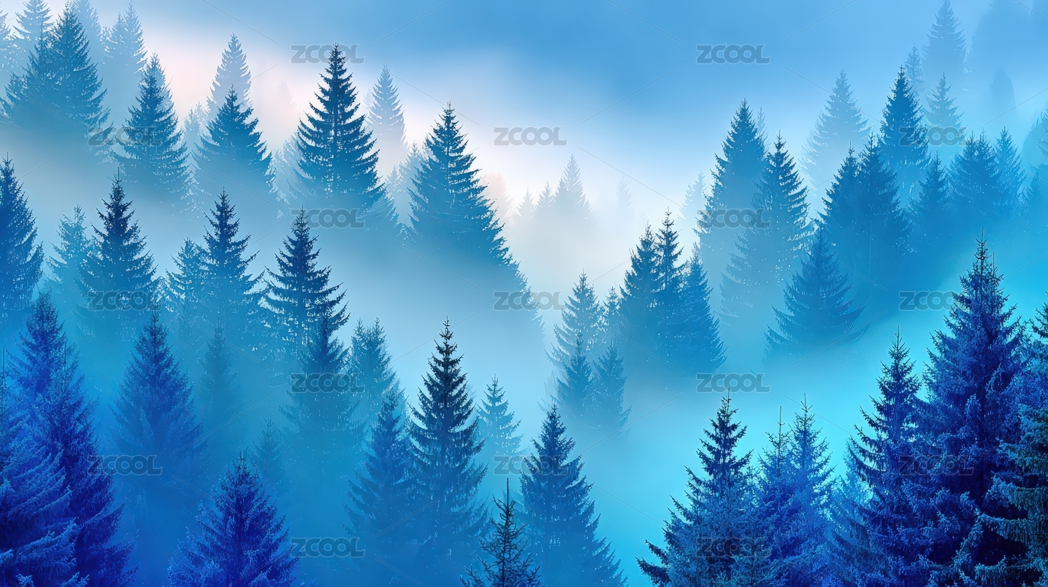 森林,树木,雾气,光线,松树,山野,清晨,意境,渐变,神秘