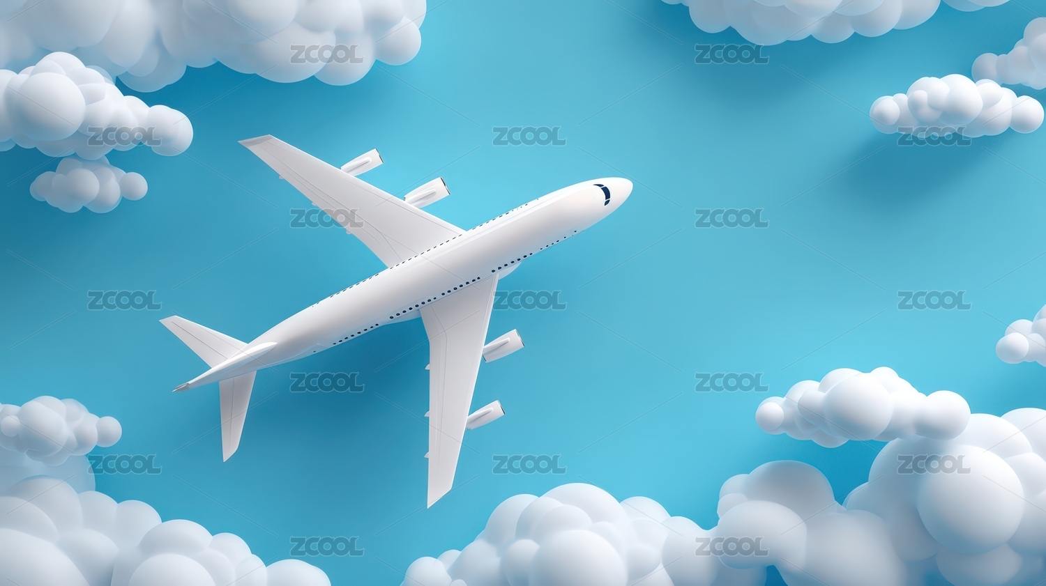 背景,蓝色,简约,设计,创意,壁纸,3D,插画,卡通,云朵