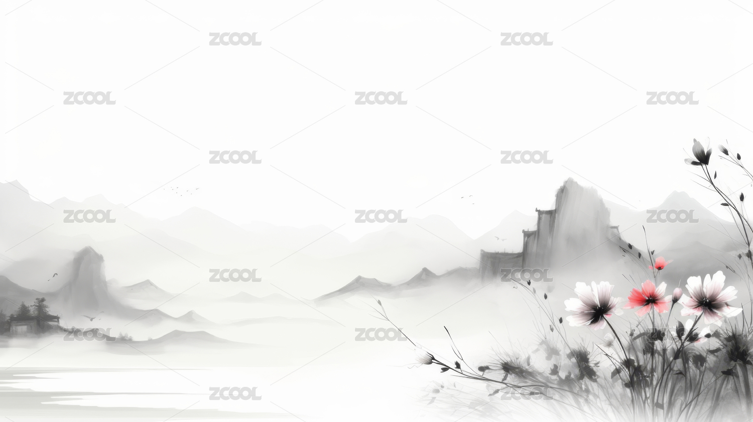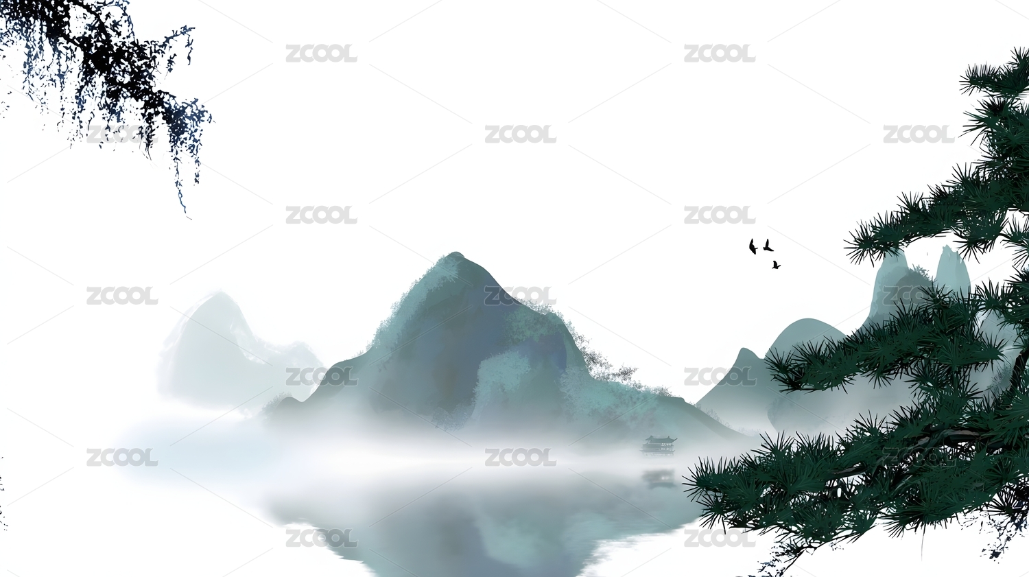 中式水墨风山水背景
