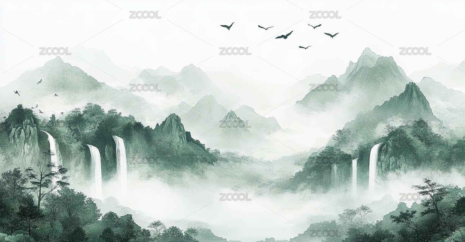 国风山水背景
