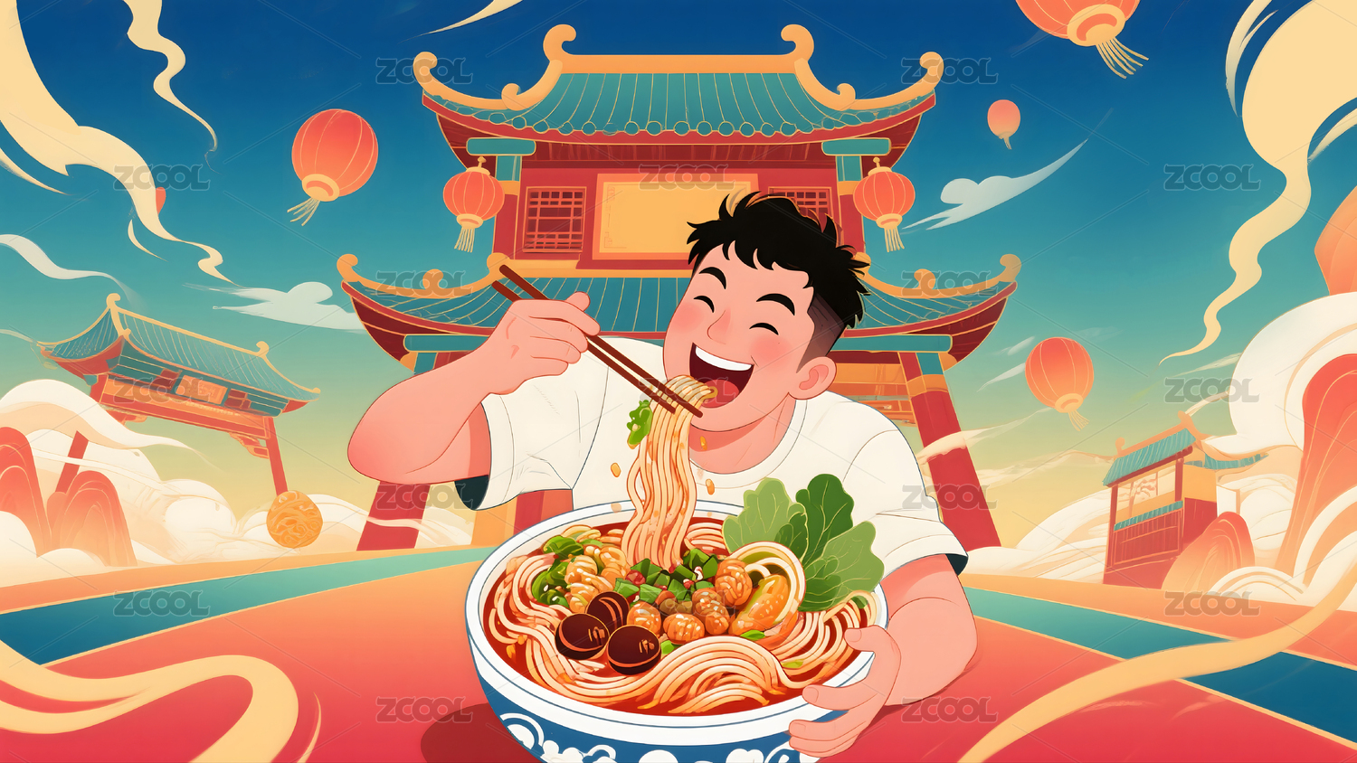 吃货节夏日夜宵美食烧烤餐饮大排档国潮插画