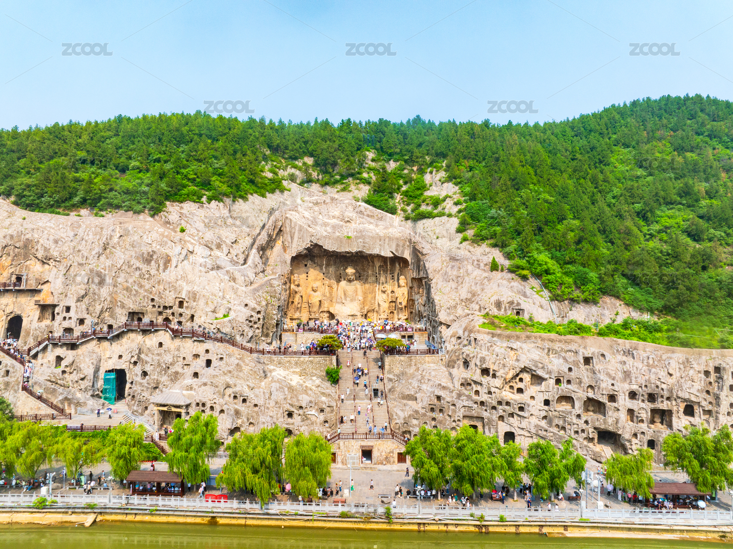 中国河南省洛阳龙门石窟景区伊河西岸石窟群