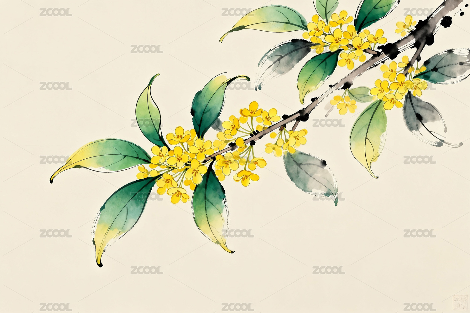 自然,背景,黄色,绿叶,清新,装饰,绘画,艺术,优雅,传统