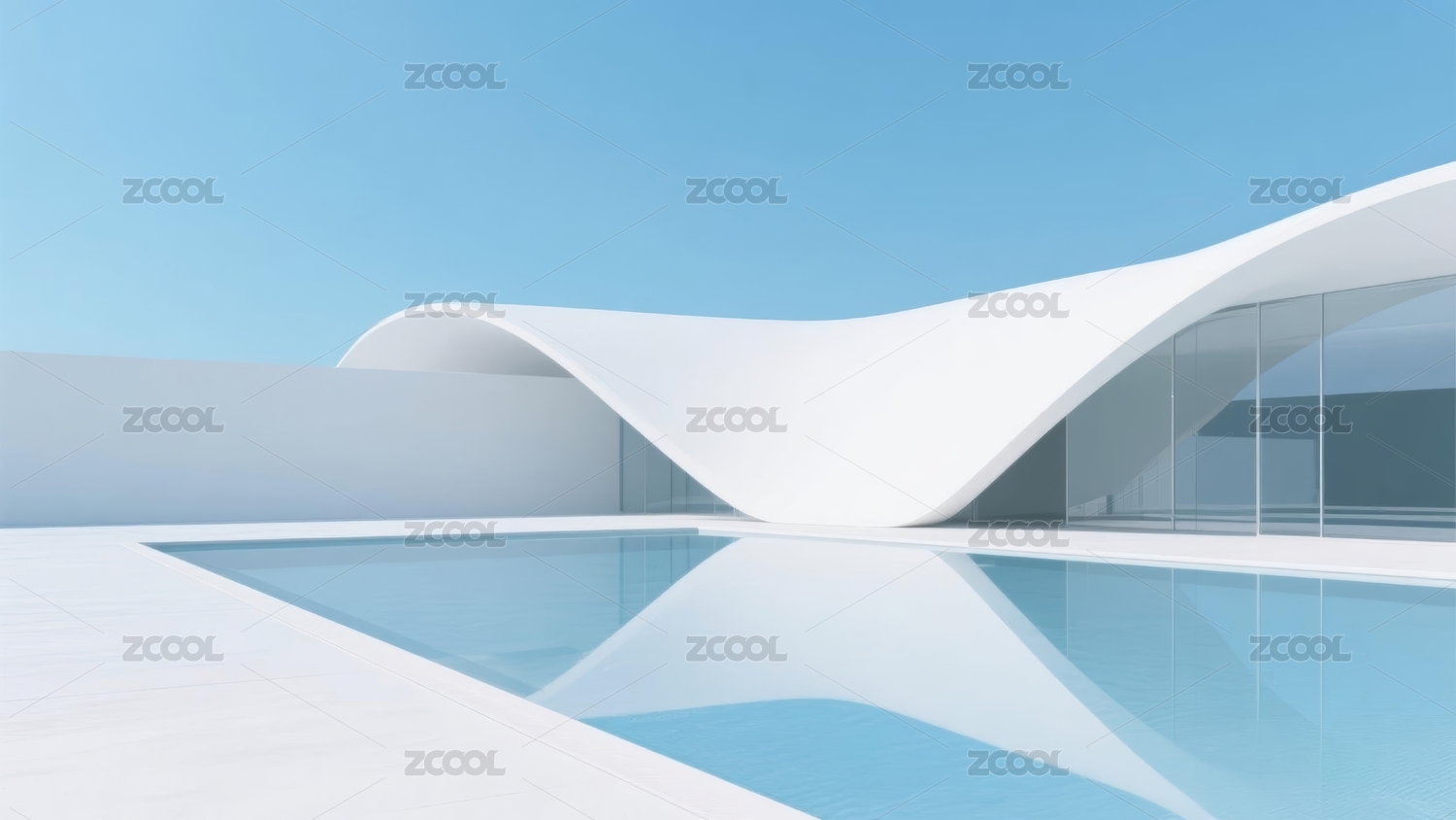 白色流线型建筑水面场景